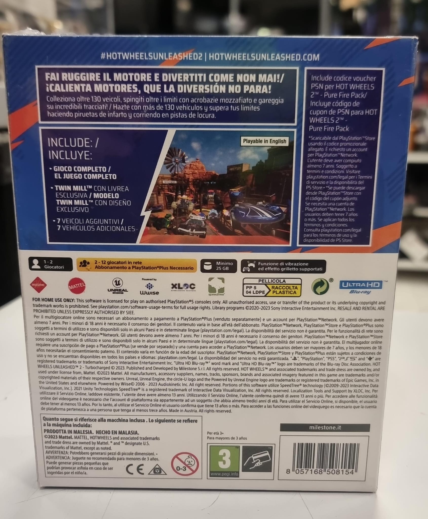 Edición especial del videojuego Hot Wheels Unleashed 2 para PlayStation 5.Incluye un coche Hot Wheels de edición limitada. Basado en el juego Hot Wheels Unleashed 2 Turbocharged. Caja castellano Juego ingles. Nuevo precintado.