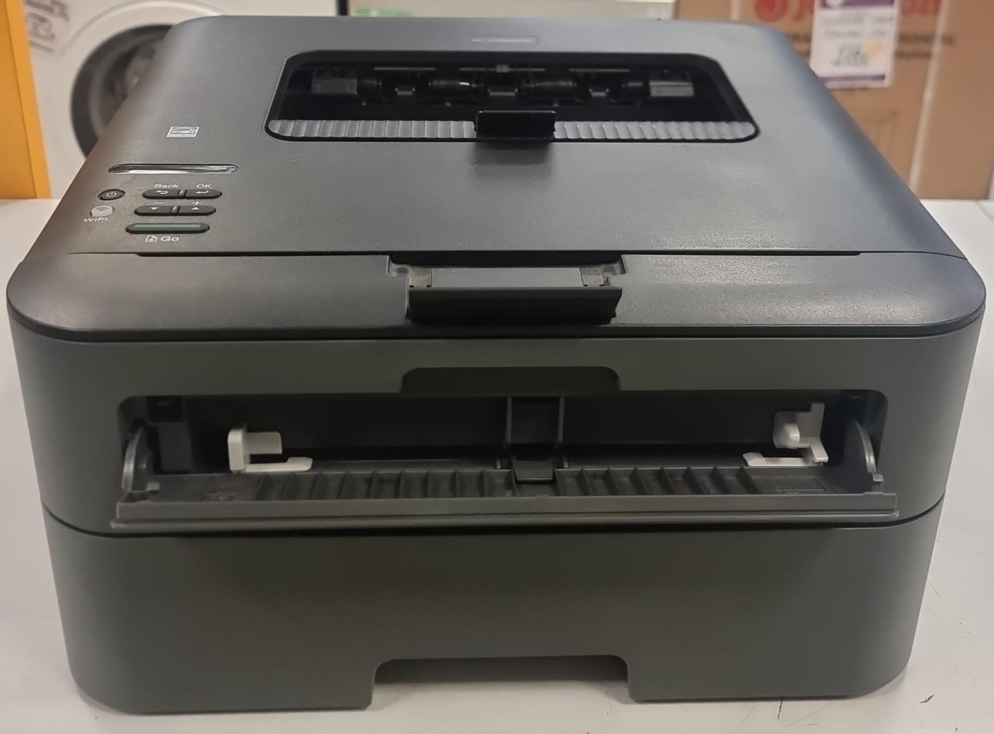 Impresora láser monocromo compacta y eficiente. Conectividad Wi-Fi y USB. Impresión a doble cara automática (dúplex). Bandeja de papel con capacidad para 250 hojas.