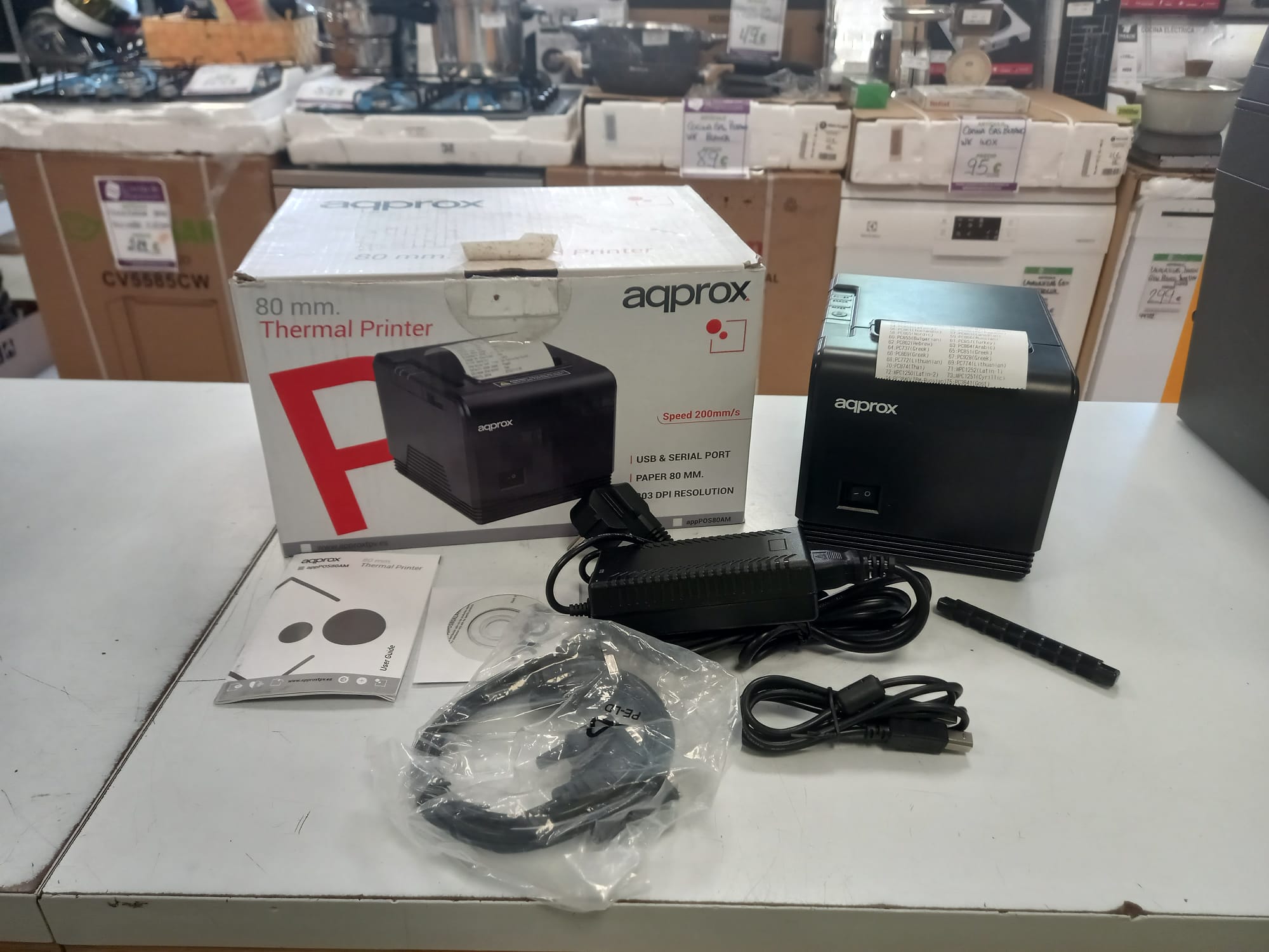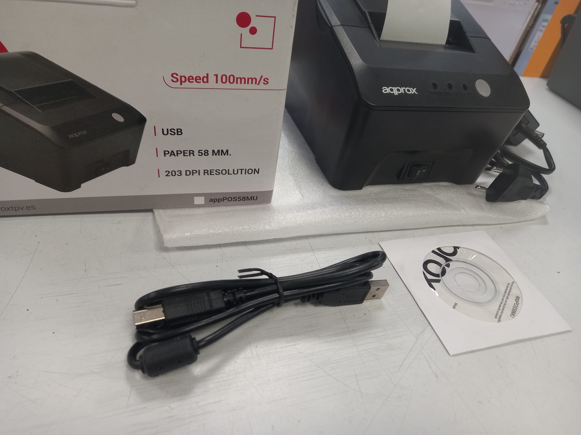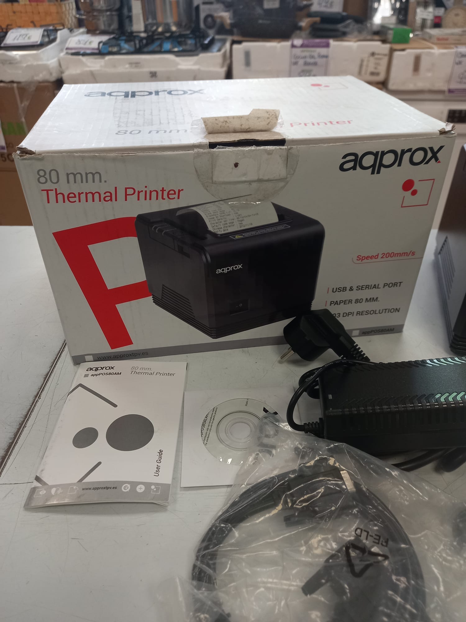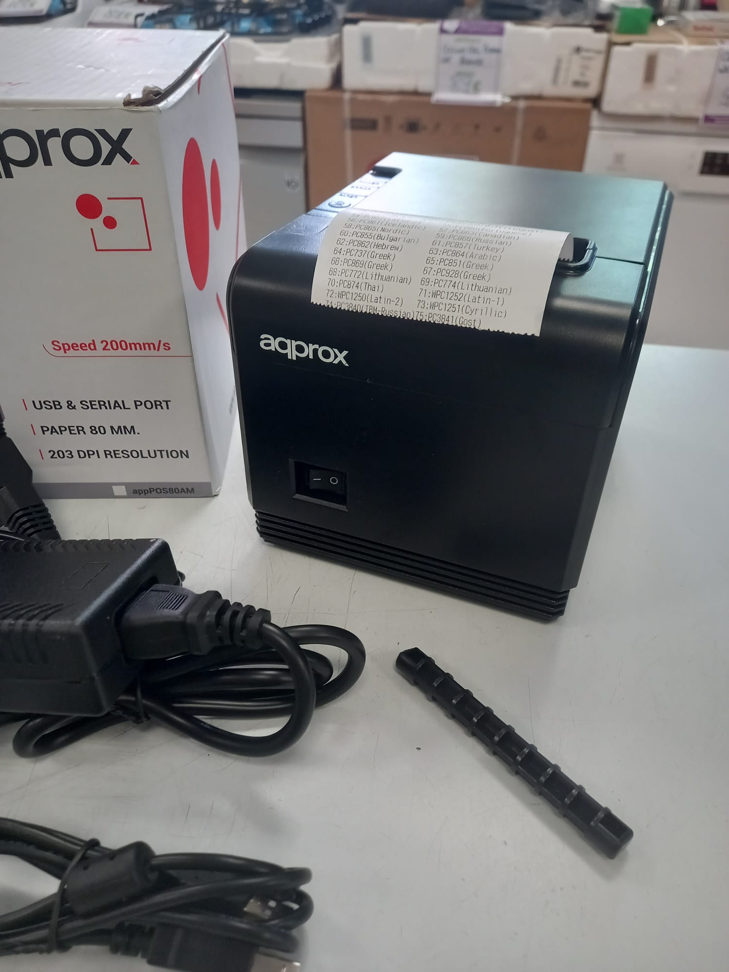 Impresora térmica de tickets de la marca Aqprox. Es un modelo de 80mm de ancho de papel.Velocidad de impresión de 200mm/s.Conexión USB y Serial. Resolución de 203 DPI.