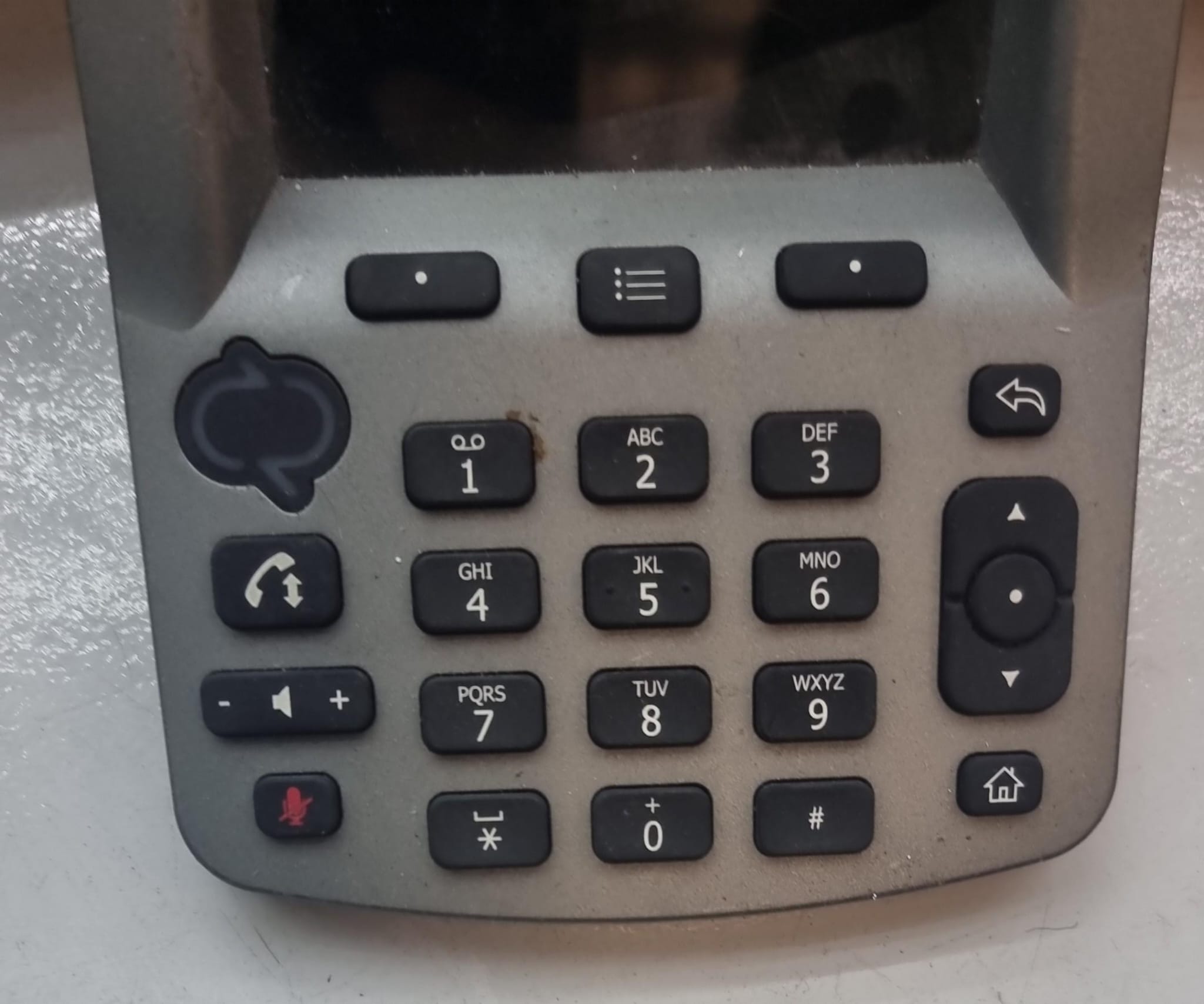 Intercomunicador de sobremesa Polycom CX3000 con tecnología HD Voice. Diseño triangular con altavoz central.Pantalla LCD.Teclado numérico y teclas de función.