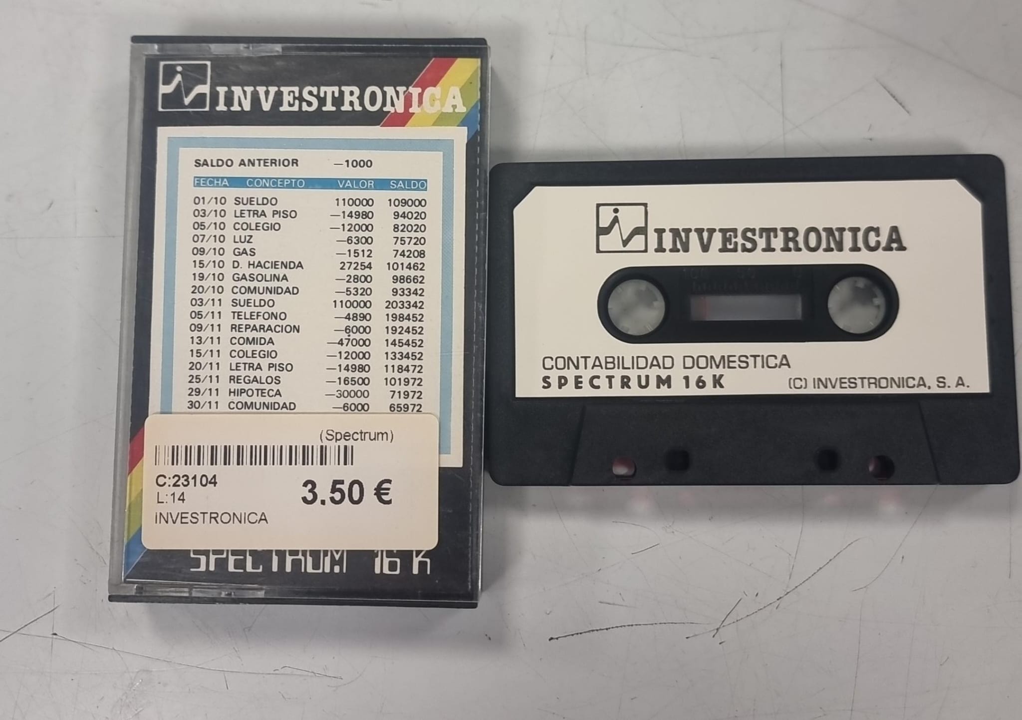 Software de contabilidad doméstica para Spectrum 16K de Investronica. Incluye el casete con el programa.