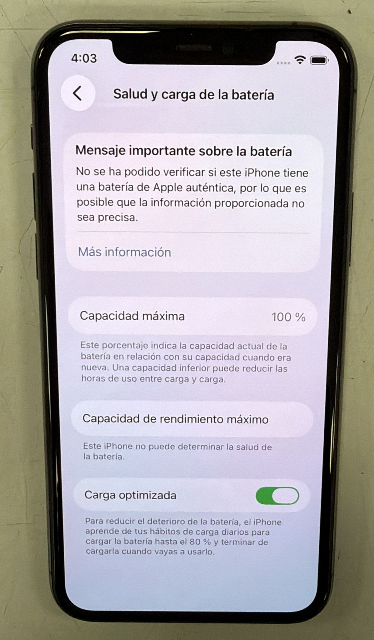 Teléfono móvil iPhone 11 Pro en color Gris Espacial. Capacidad de almacenamiento de 256 GB. Bateria reemplazada con vida del 100%.