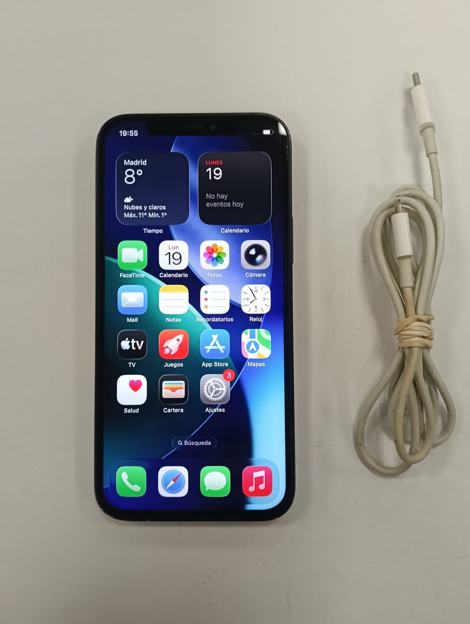 iPhone 12 en color negro con 64GB de almacenamiento. Pantalla de 6.1 pulgadas. Chip A14 Bionic. Sistema de cámara dual avanzado.