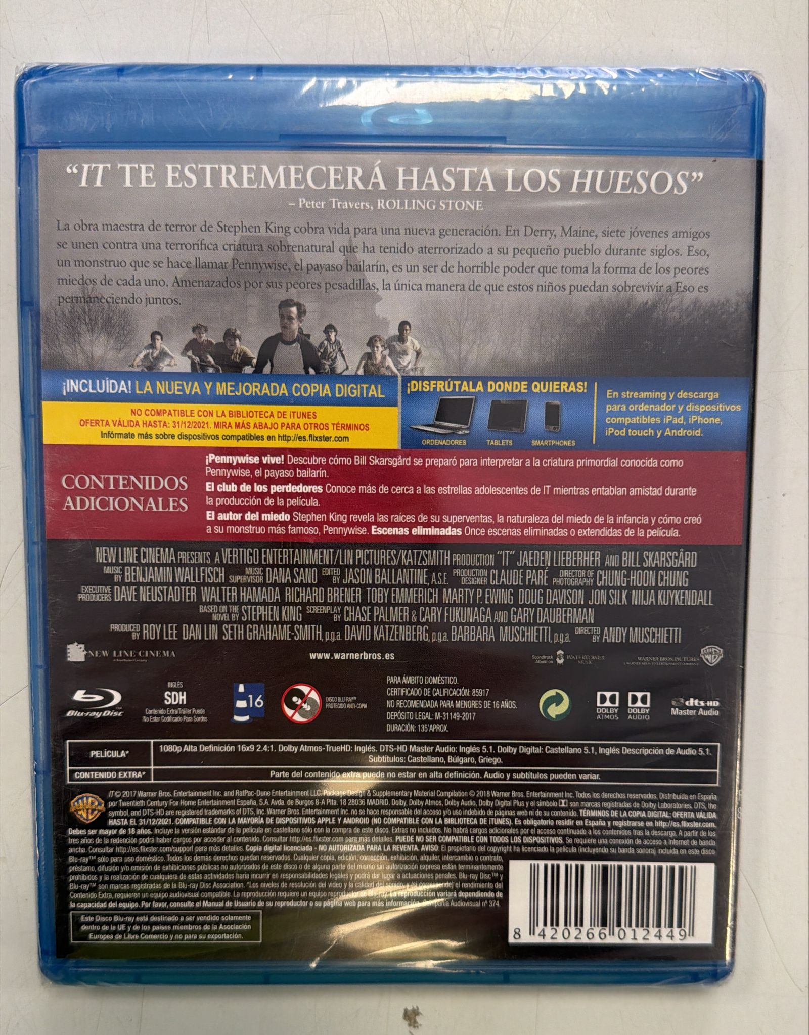 Película It de Stephen King en formato Blu-ray.Incluye copia digital.