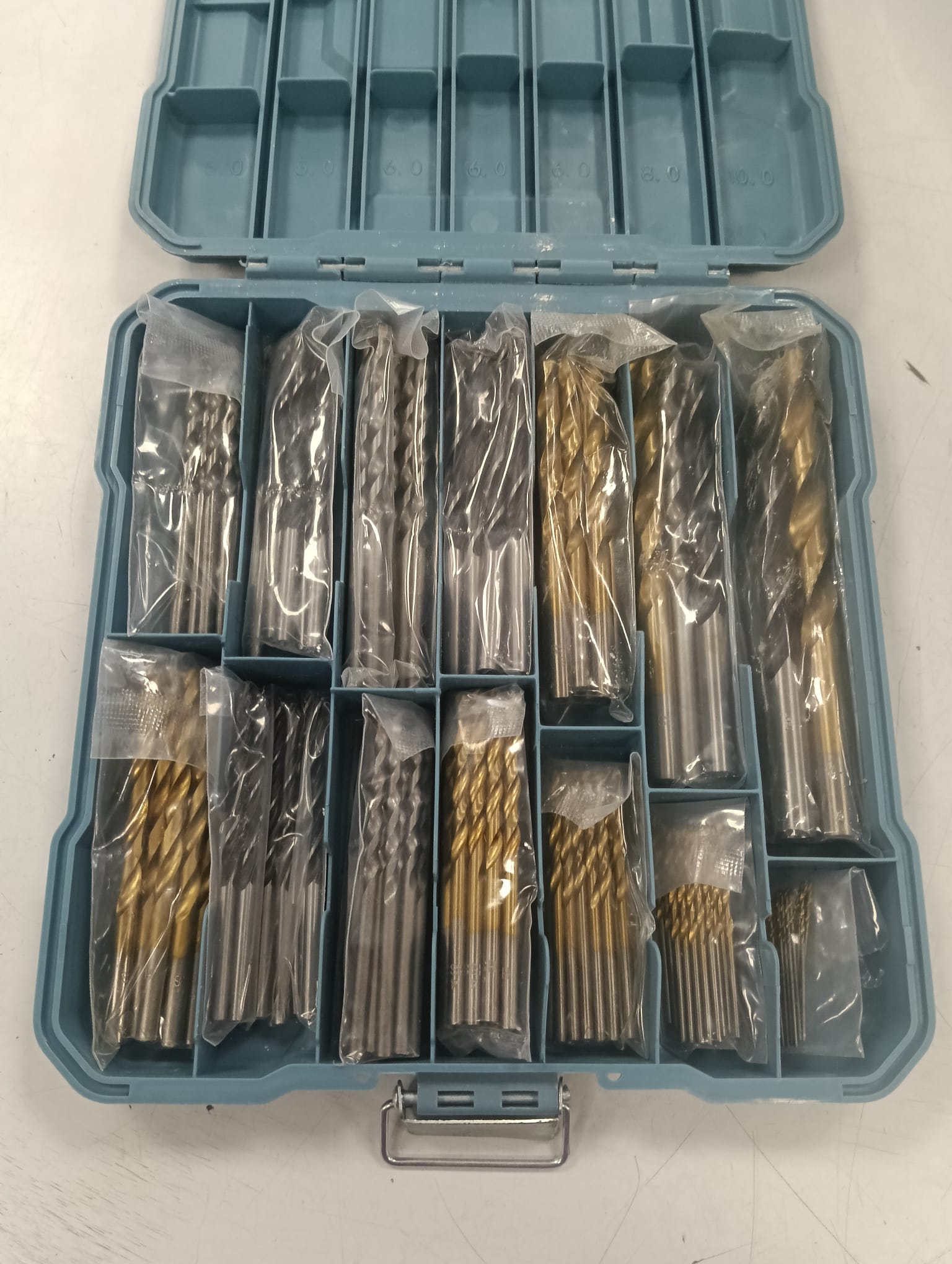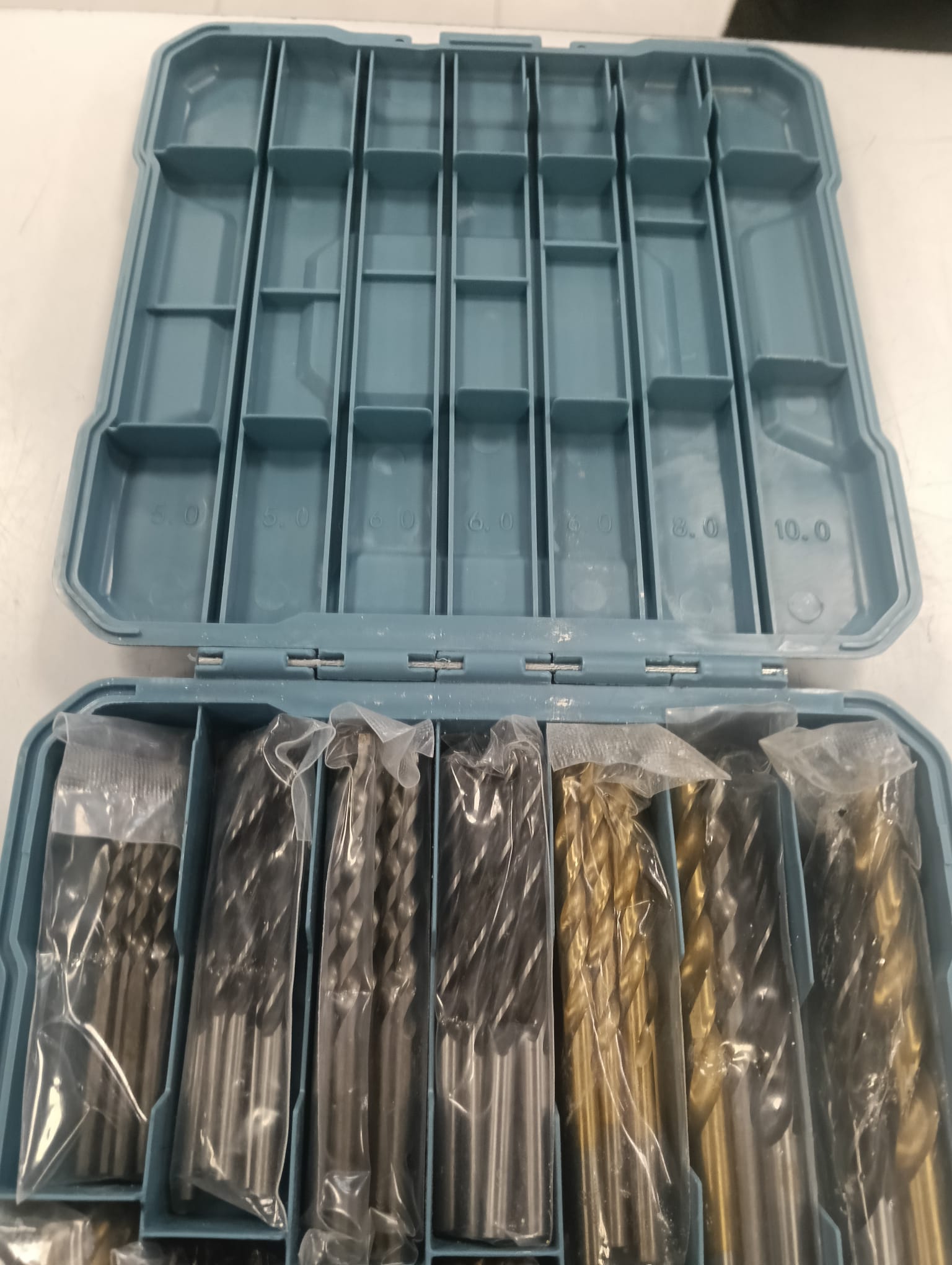 Pack de brocas Hi-Spec. Estuche con múltiples brocas de varias medidas para varias superficies.
