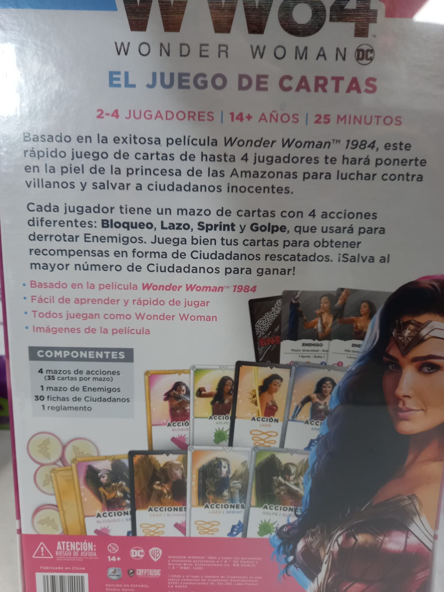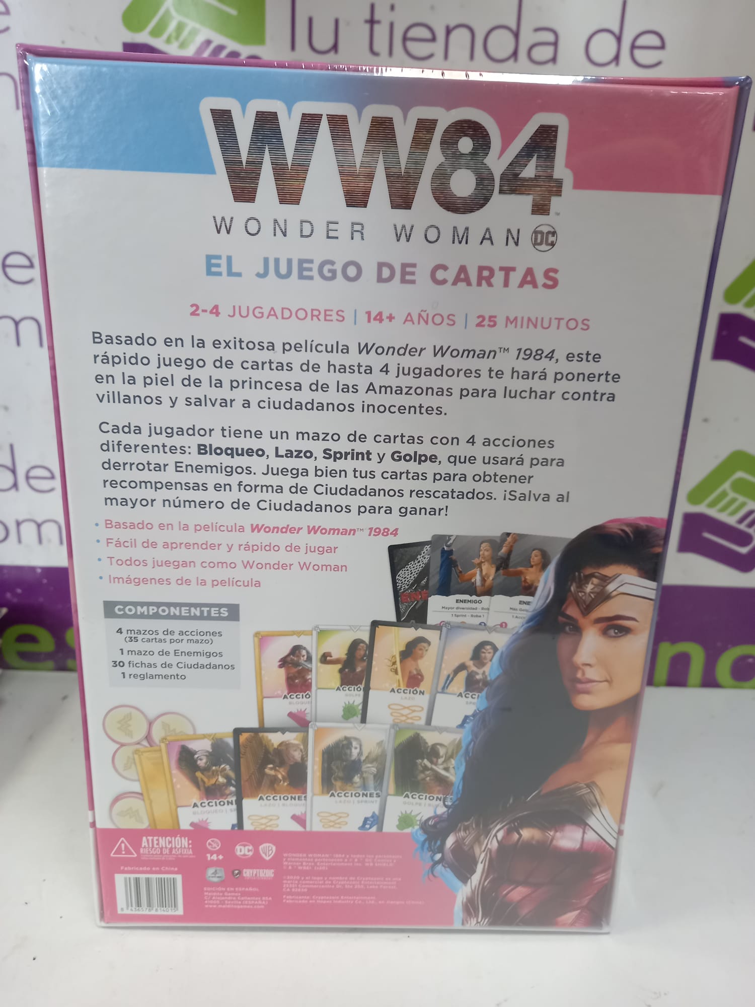 En el juego de mesa WW84: El Juego de Cartas podrás meterte en el traje de la increíble heroína Wonder Woman. Con el poder de la más capaz de las amazonas, deberás derrotar a los malvados villanos y rescatar a los ciudadanos en peligro.