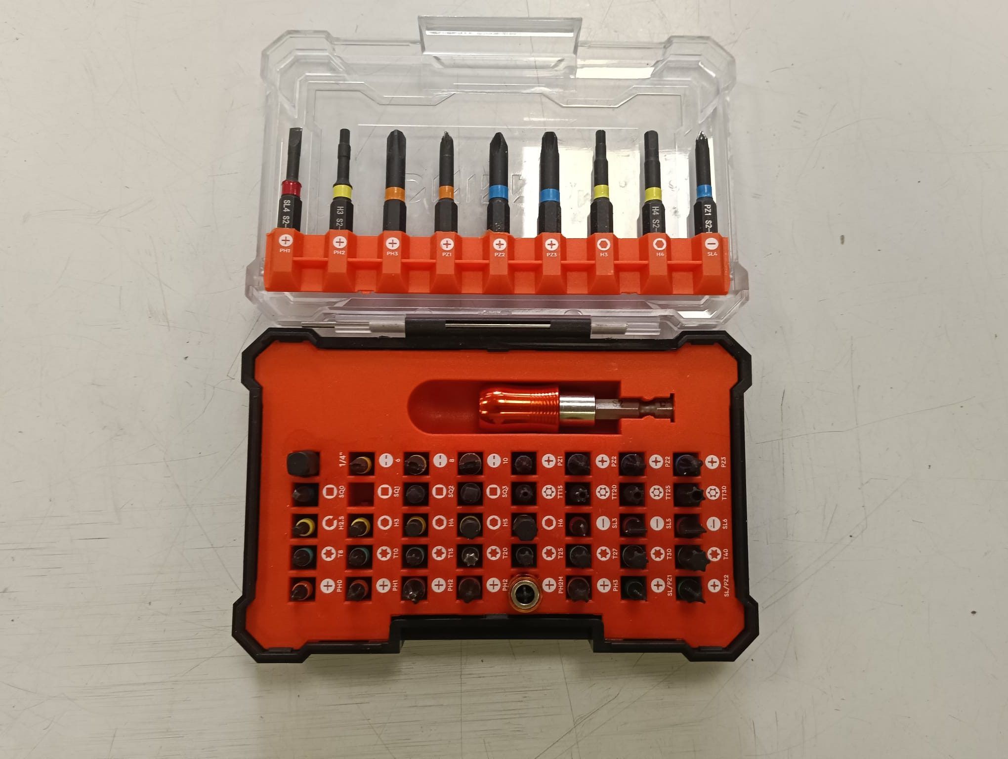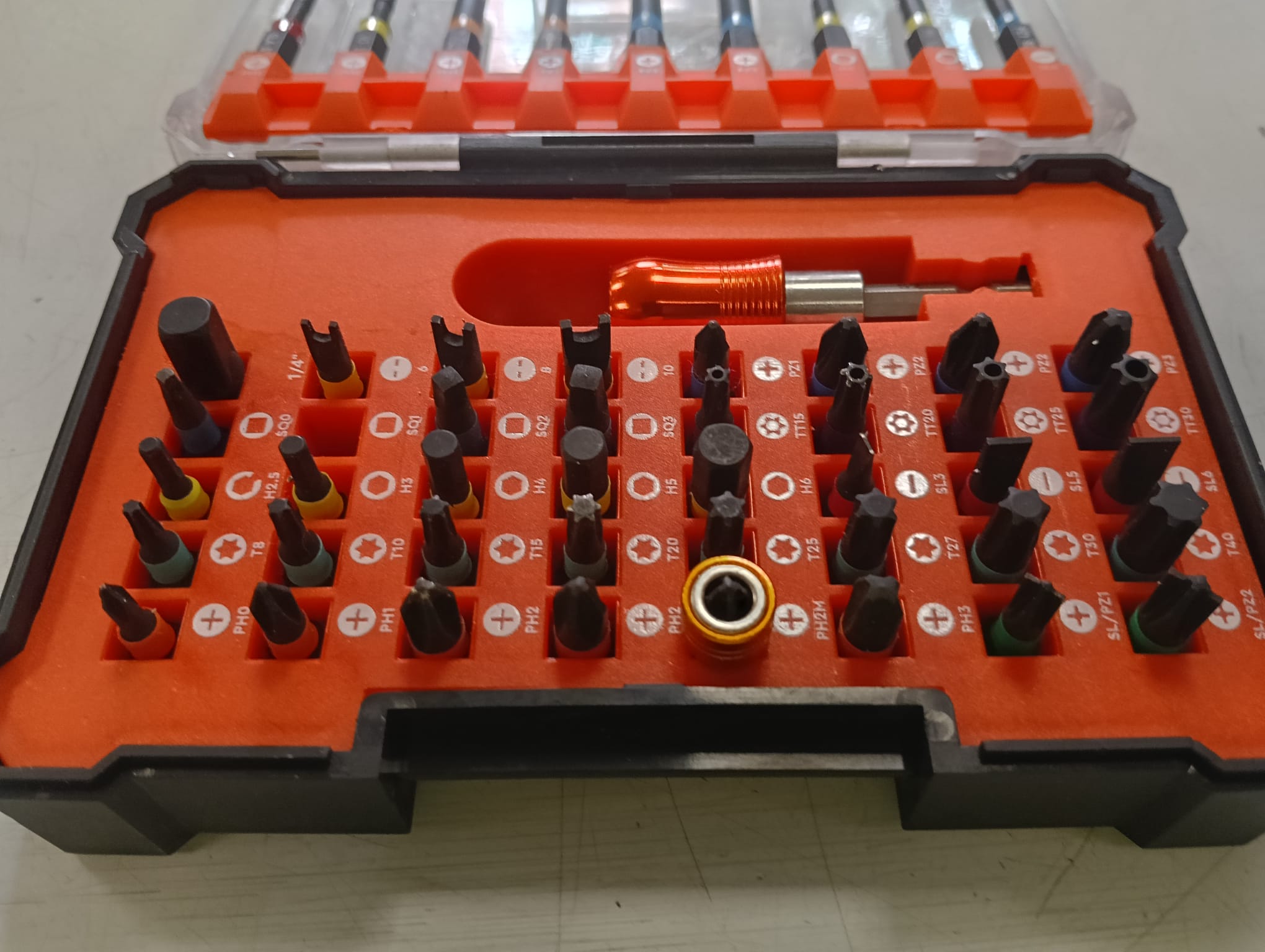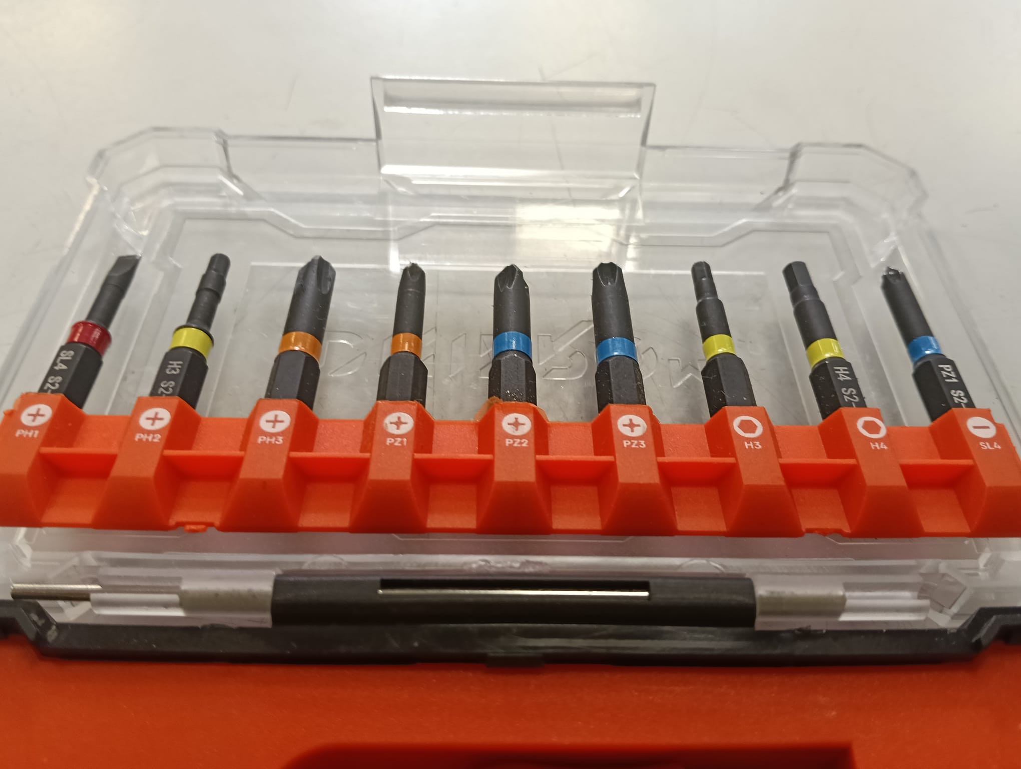 Este juego de puntas Dnipro incluye una variedad de puntas para diferentes usos. Puntas de destornillador.Incluye un mango magnético.Estuche de almacenamiento naranja y transparente.