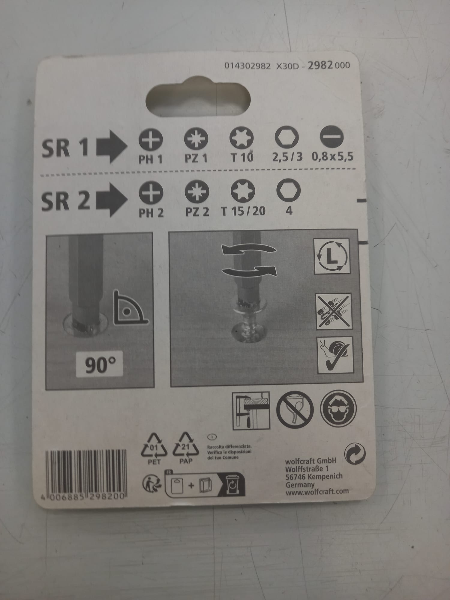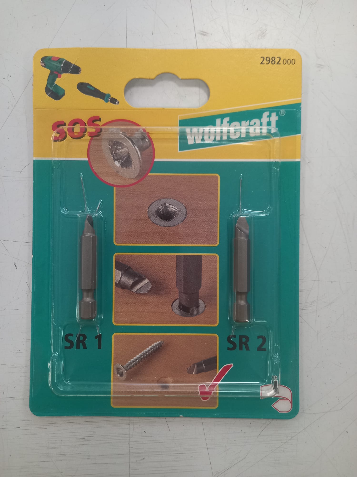 Juego de puntas de perfil defectuoso de la marca Wolcraft. Modelo: 2982000. Incluye dos puntas de diferentes tamaños.