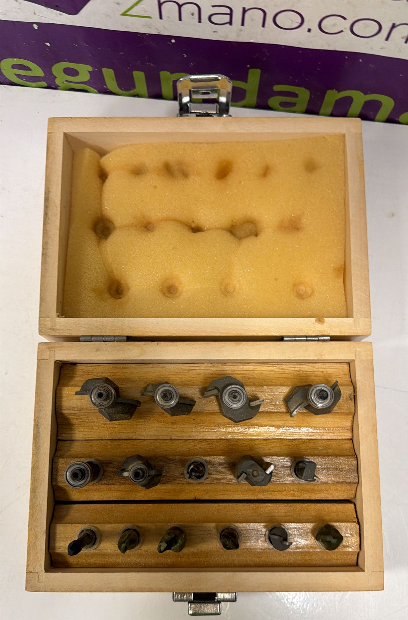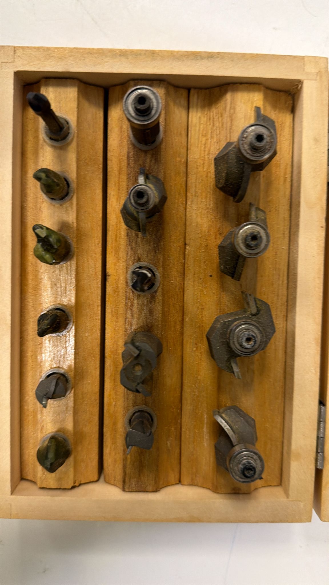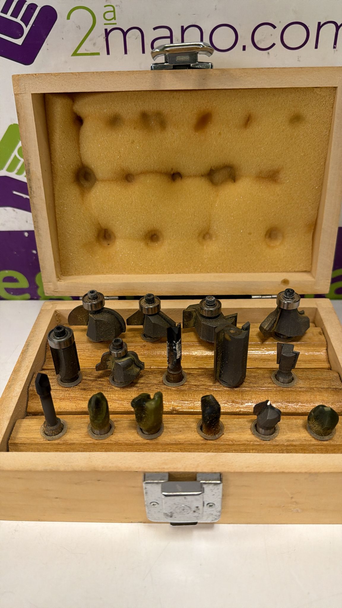Juego de fresas. Con estuche de madera. Fresas con uso. 15 unds.