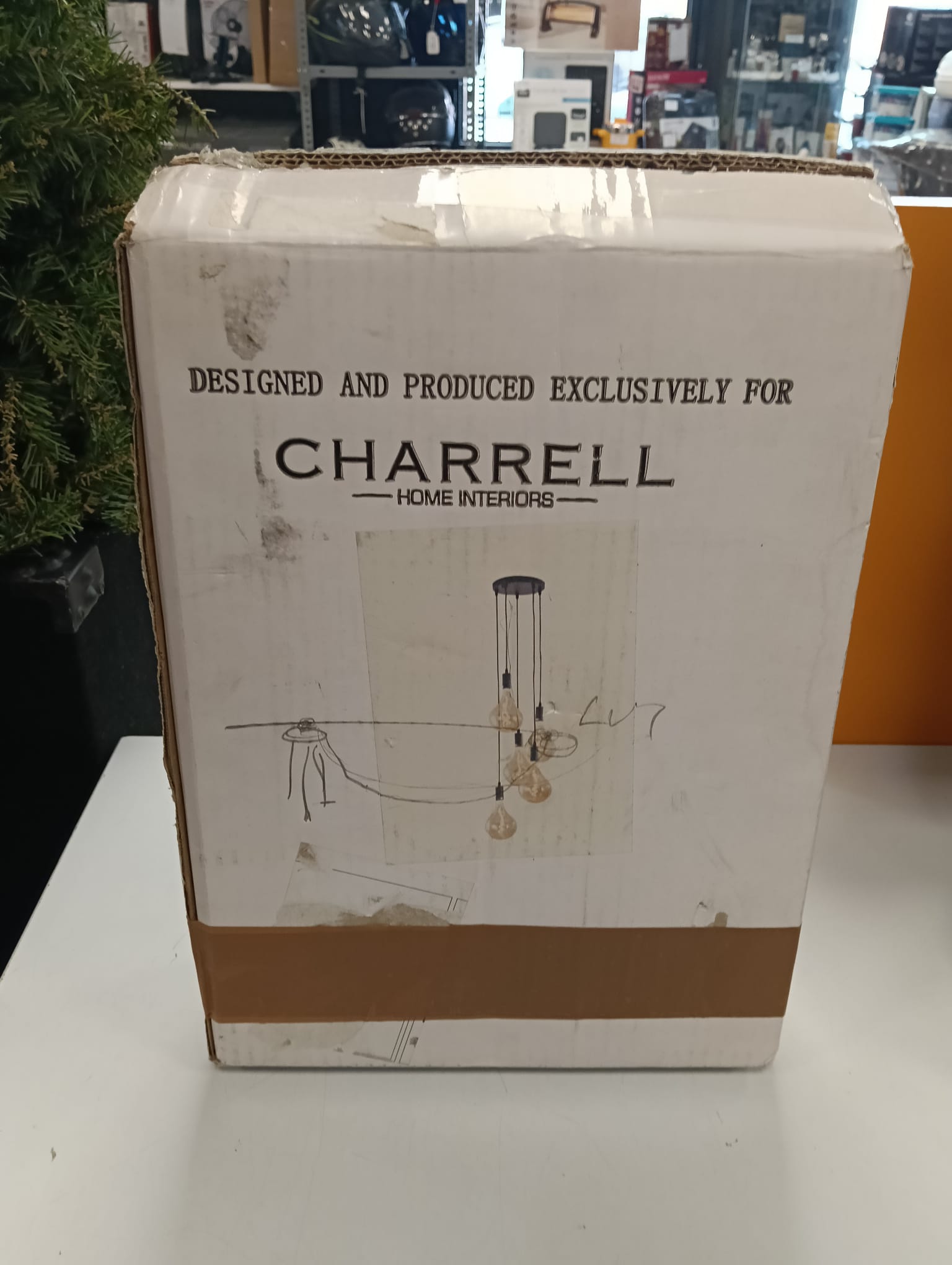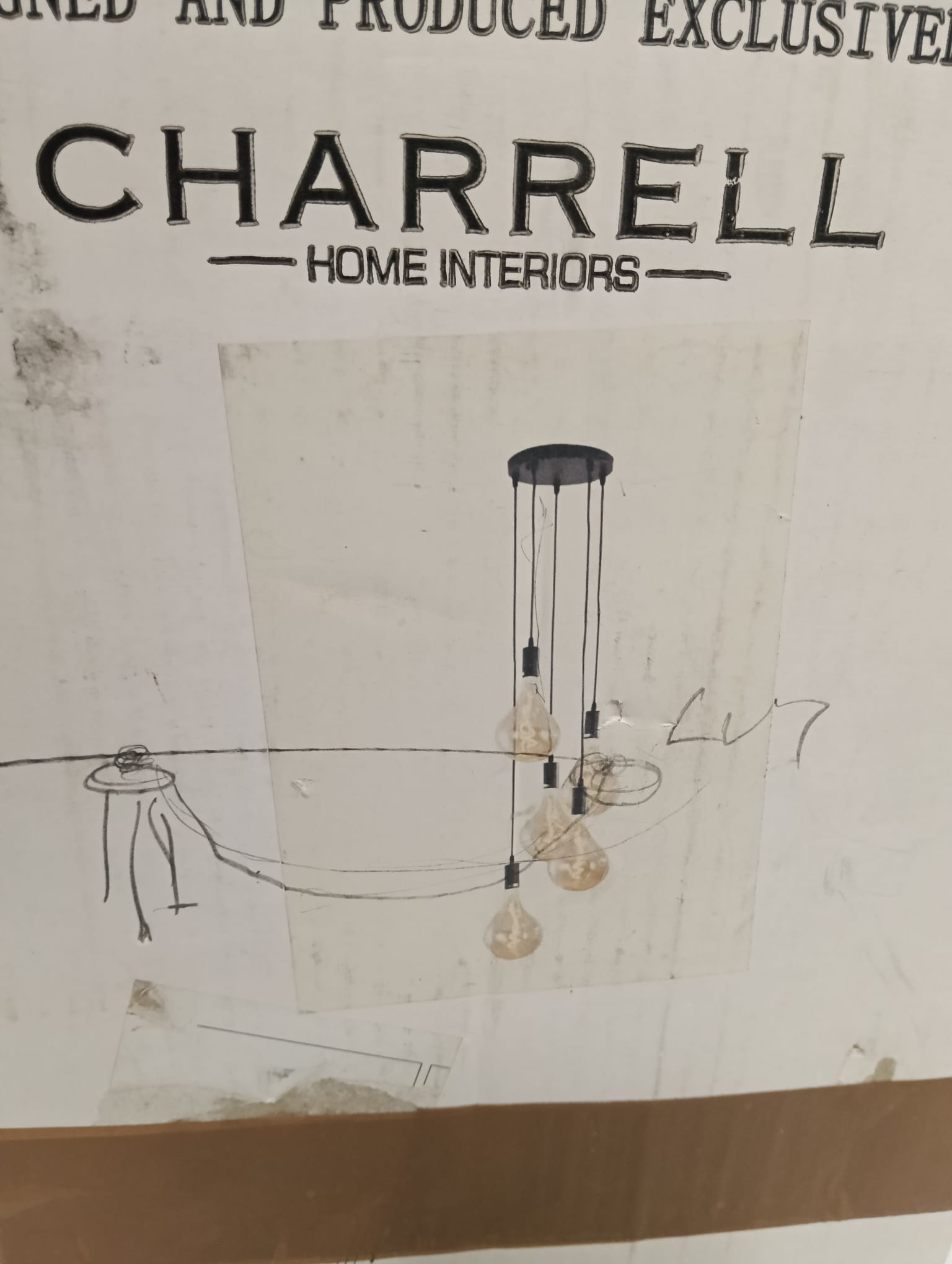 Lámpara colgante con 5 bombillas. Marca Charrell. Color negra. Con kit de montaje, no añade las bombillas.