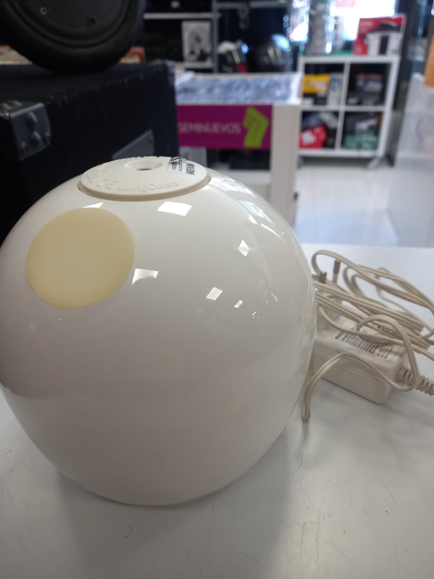 Lámpara Philips, modelo Living Colours. Se vende como se aprecia en las imágenes. No añade mando ni soporte de suelo. Regulador de color circular táctil. Botón encendido apagado. Lámpara LED.
