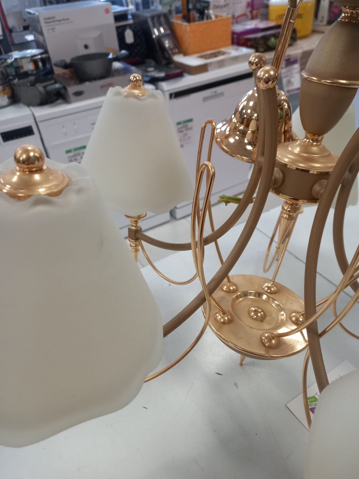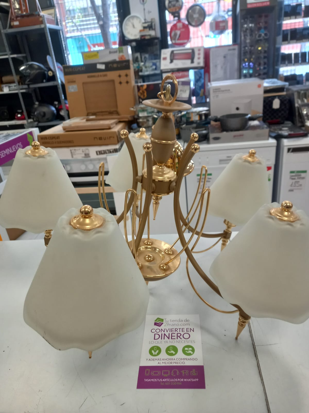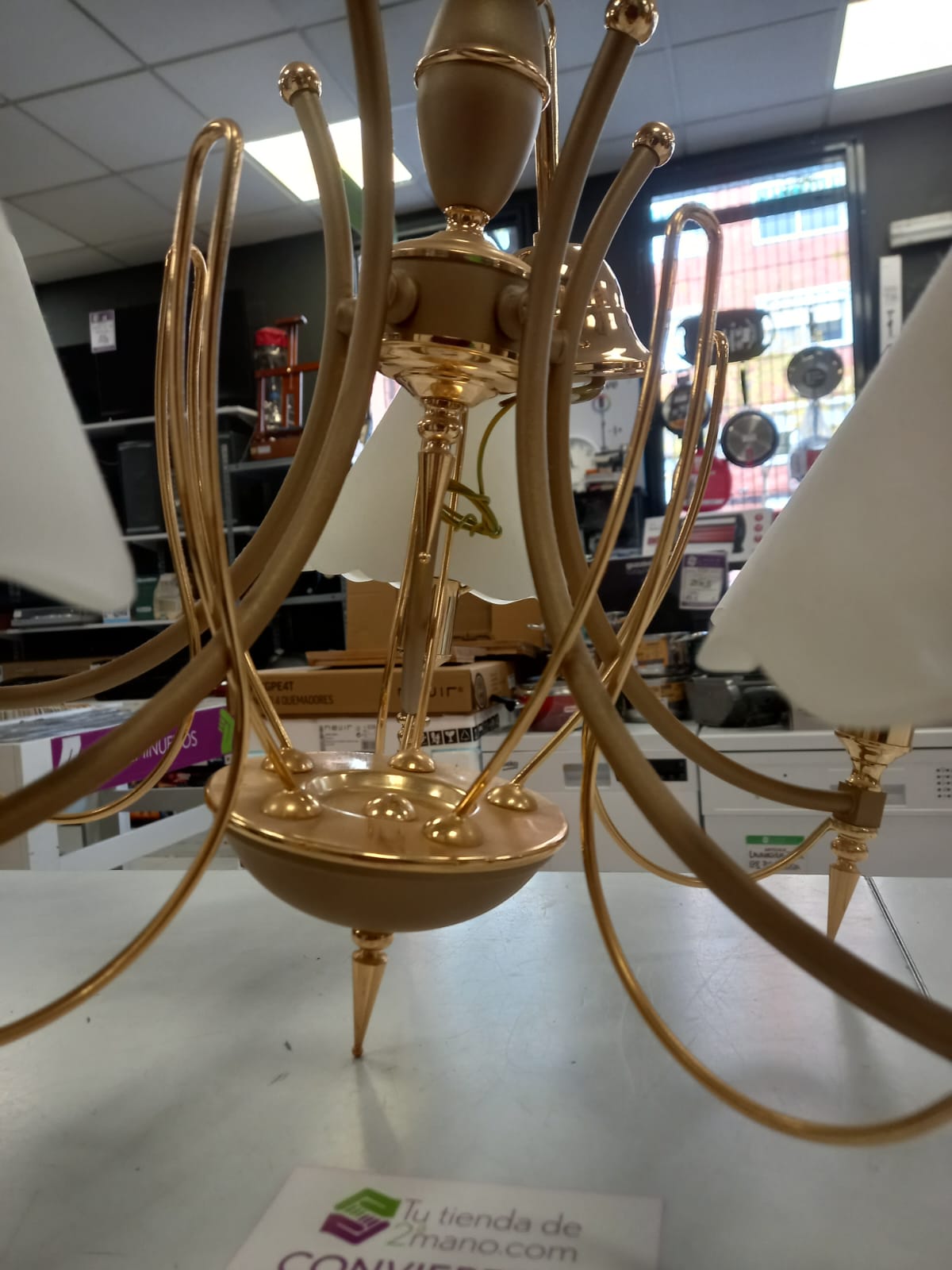 Lampara decorativa de techo color dorado 5 brazos.