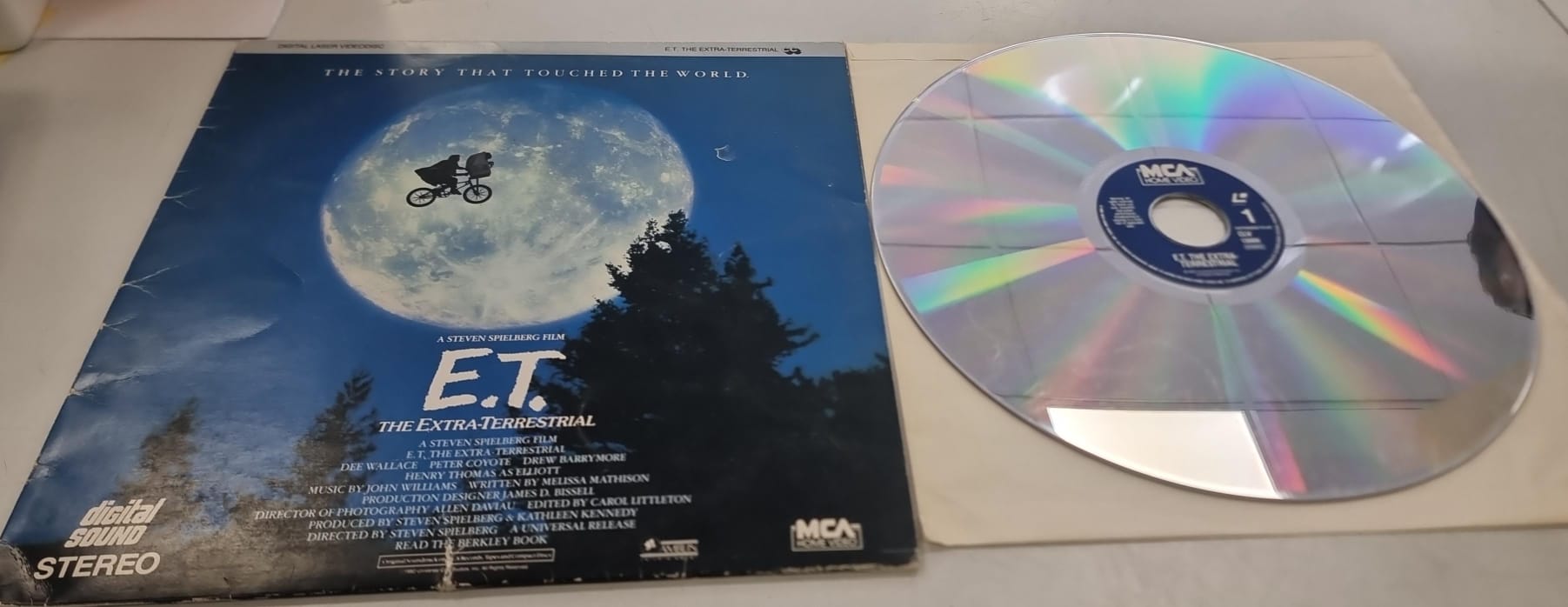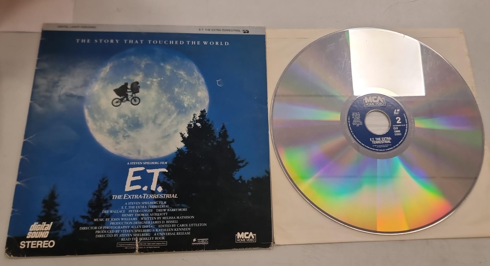 Edición en Laserdisc de la película E.T. El Extraterrestre. Incluye The Story That Touched The World. Digital Sound Stereo. Dirigida por Steven Spielberg.