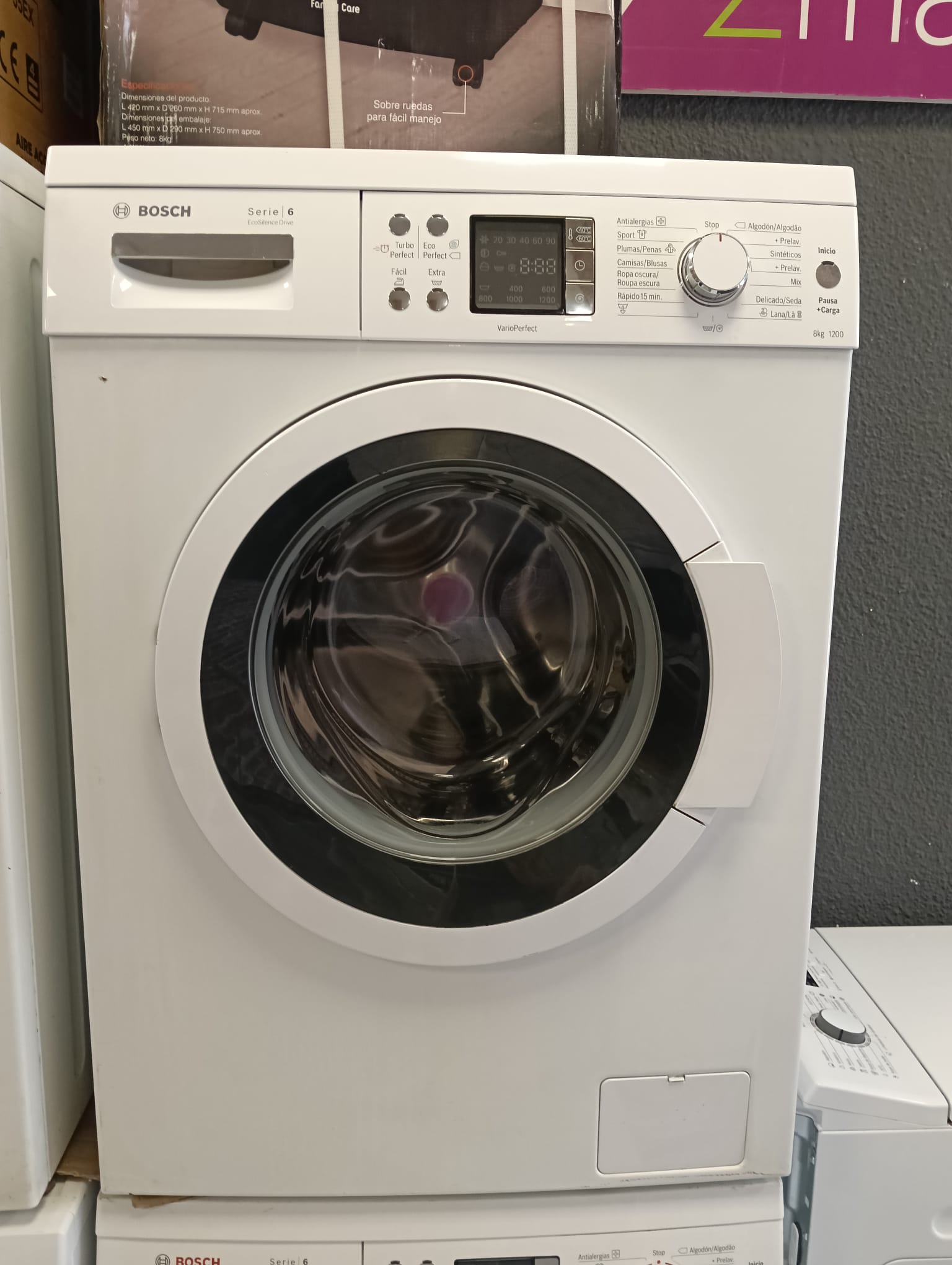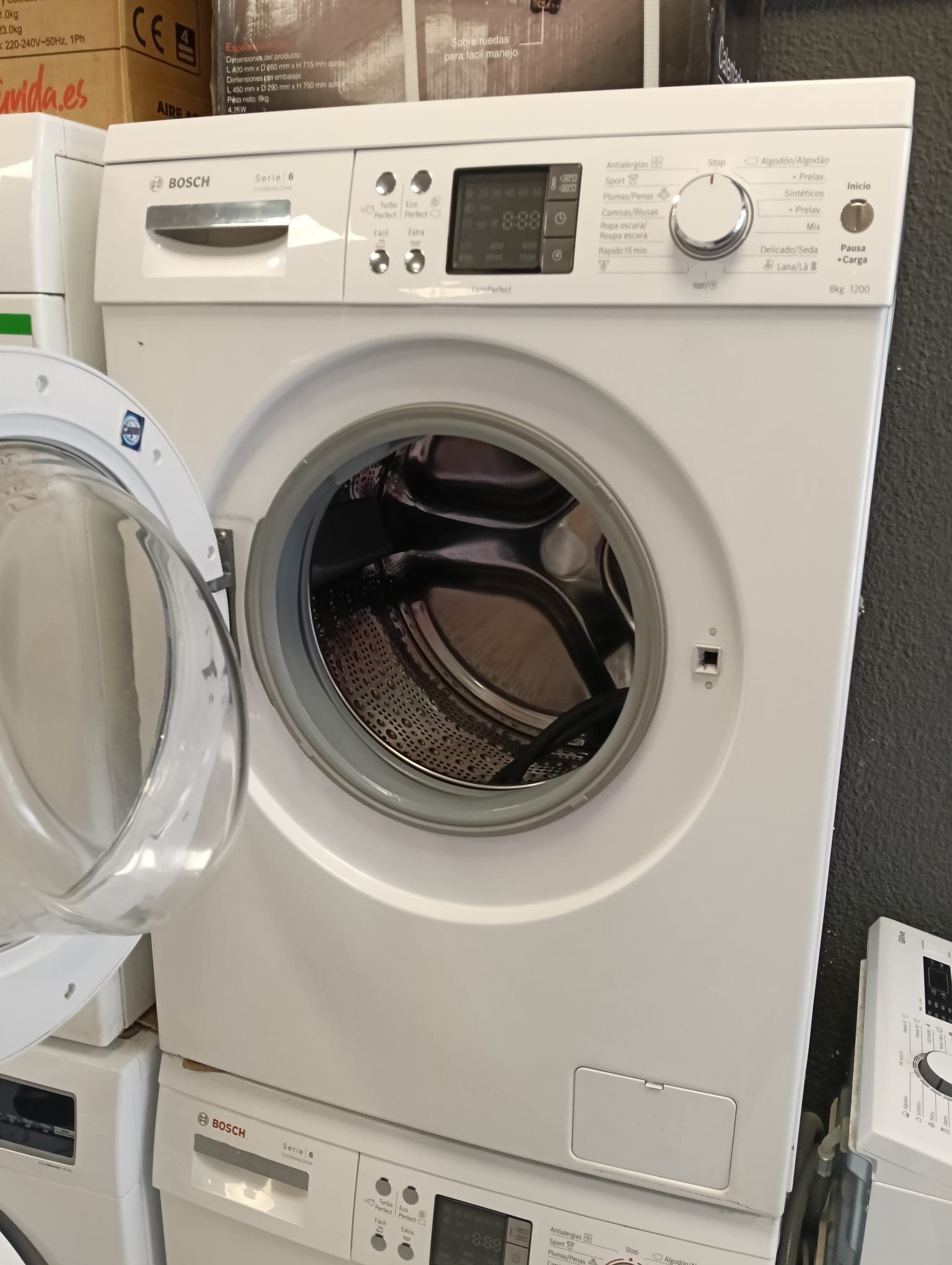 Lavadora Bosch Serie 6 VarioPerfect con capacidad de 8kg. Modelo: Serie 6 VarioPerfect. Capacidad de carga: 8kg. Centrifugado: 1200 RPM.