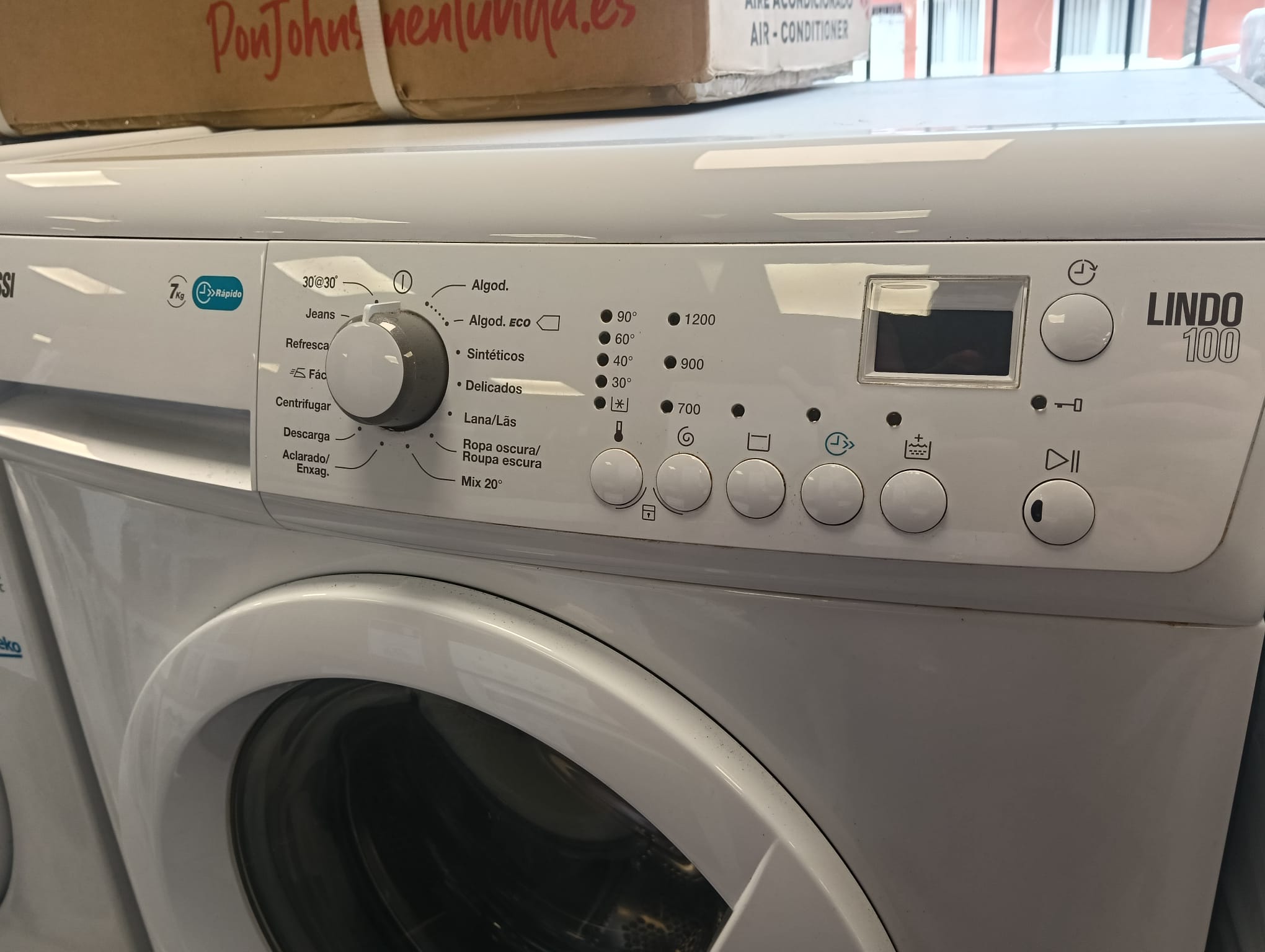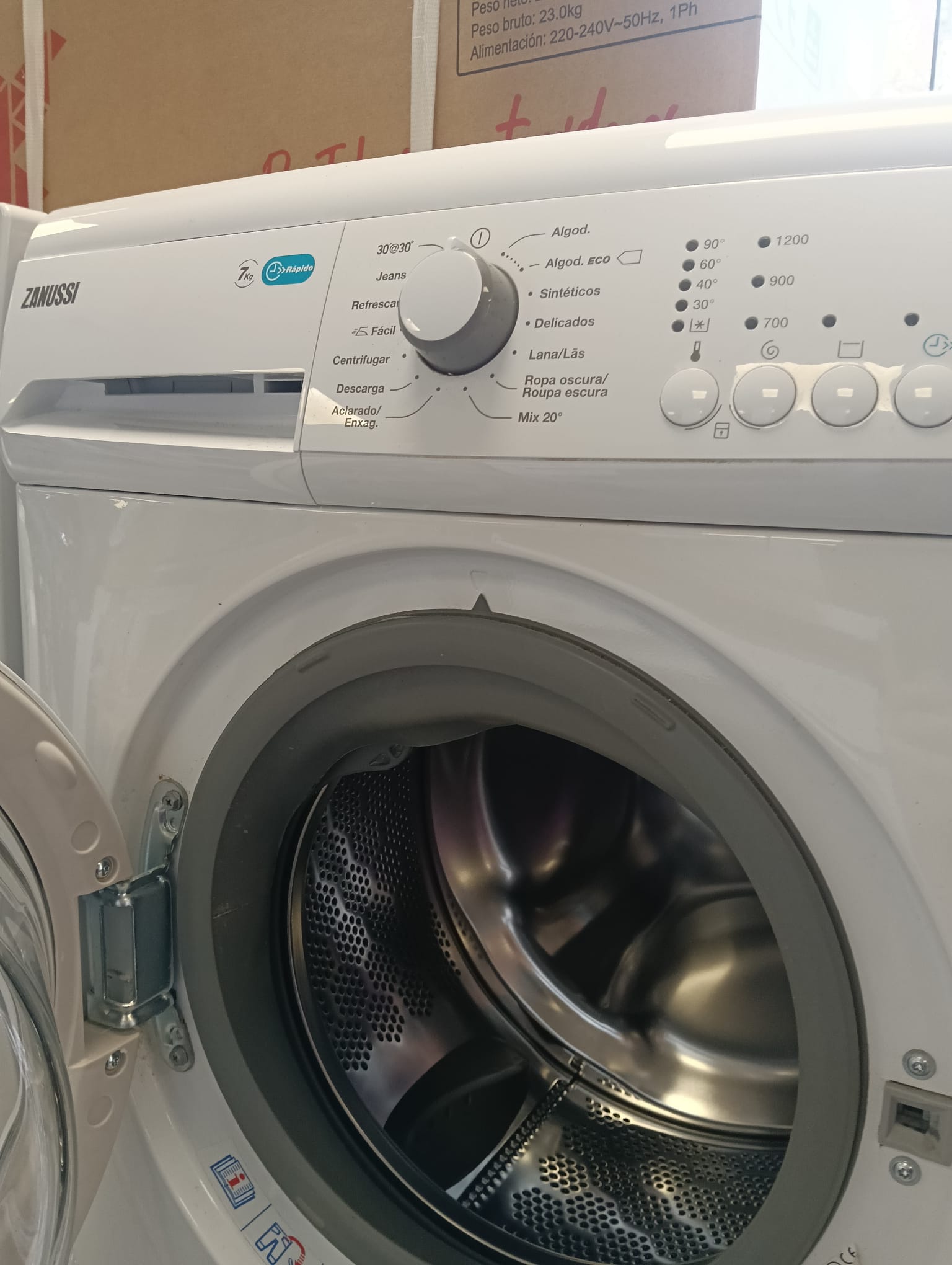 Lavadora de carga frontal Zanussi Lindo 100 en color blanco. Capacidad de 7 kg.Velocidad de centrifugado de 1200 rpm.Panel de control con selector de programas y botones.