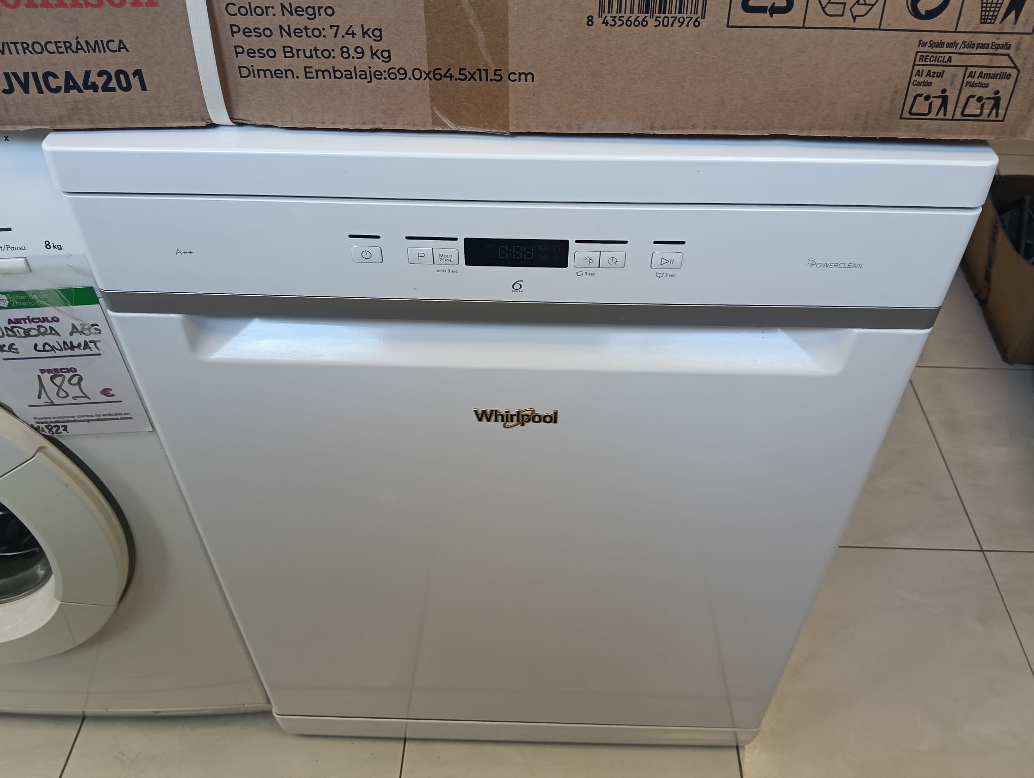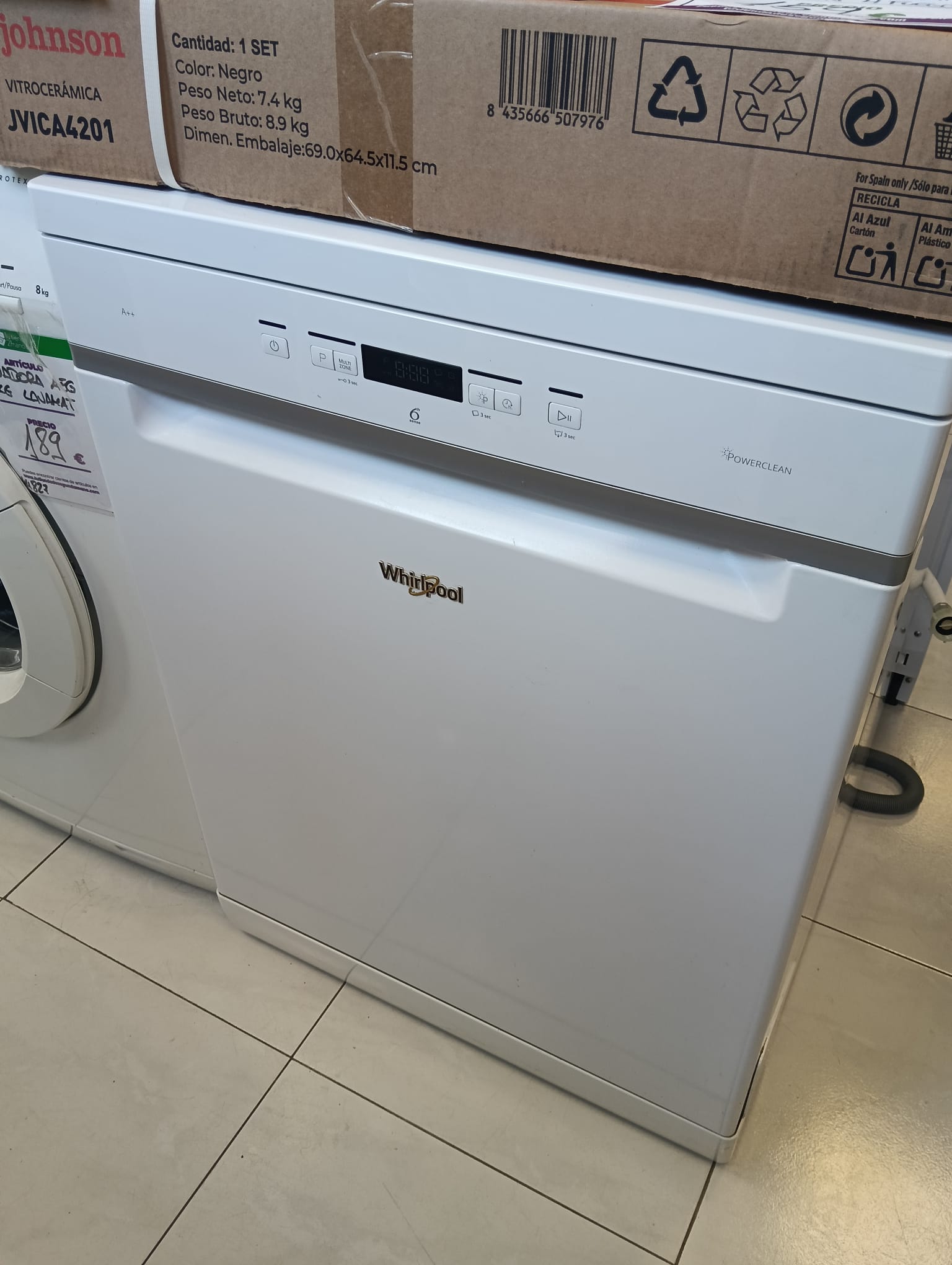 Lavavajillas Whirlpool de color blanco con tecnología PowerClean. Clase energética A++. Dimension 84.5 altox 60 de ancho.