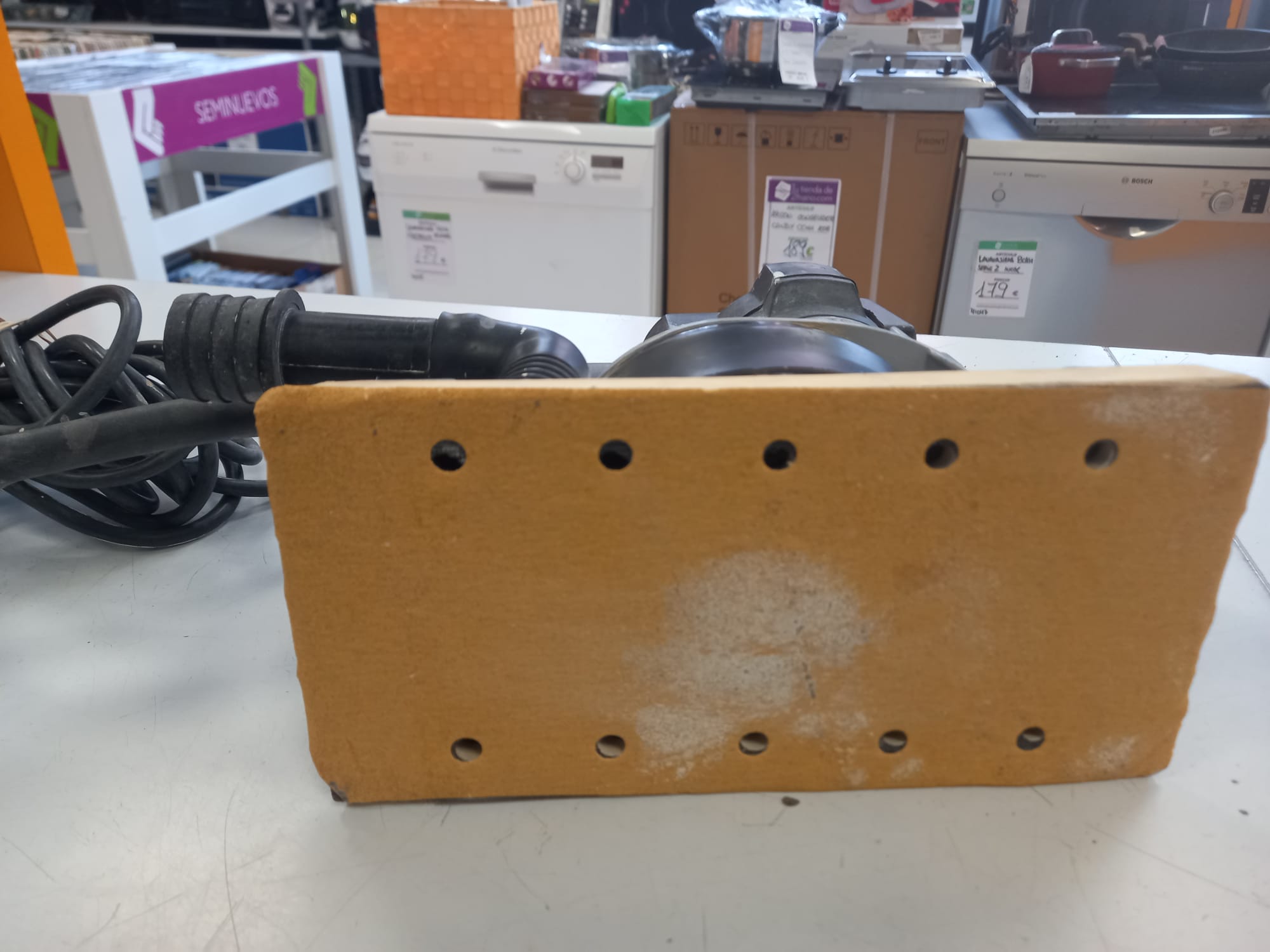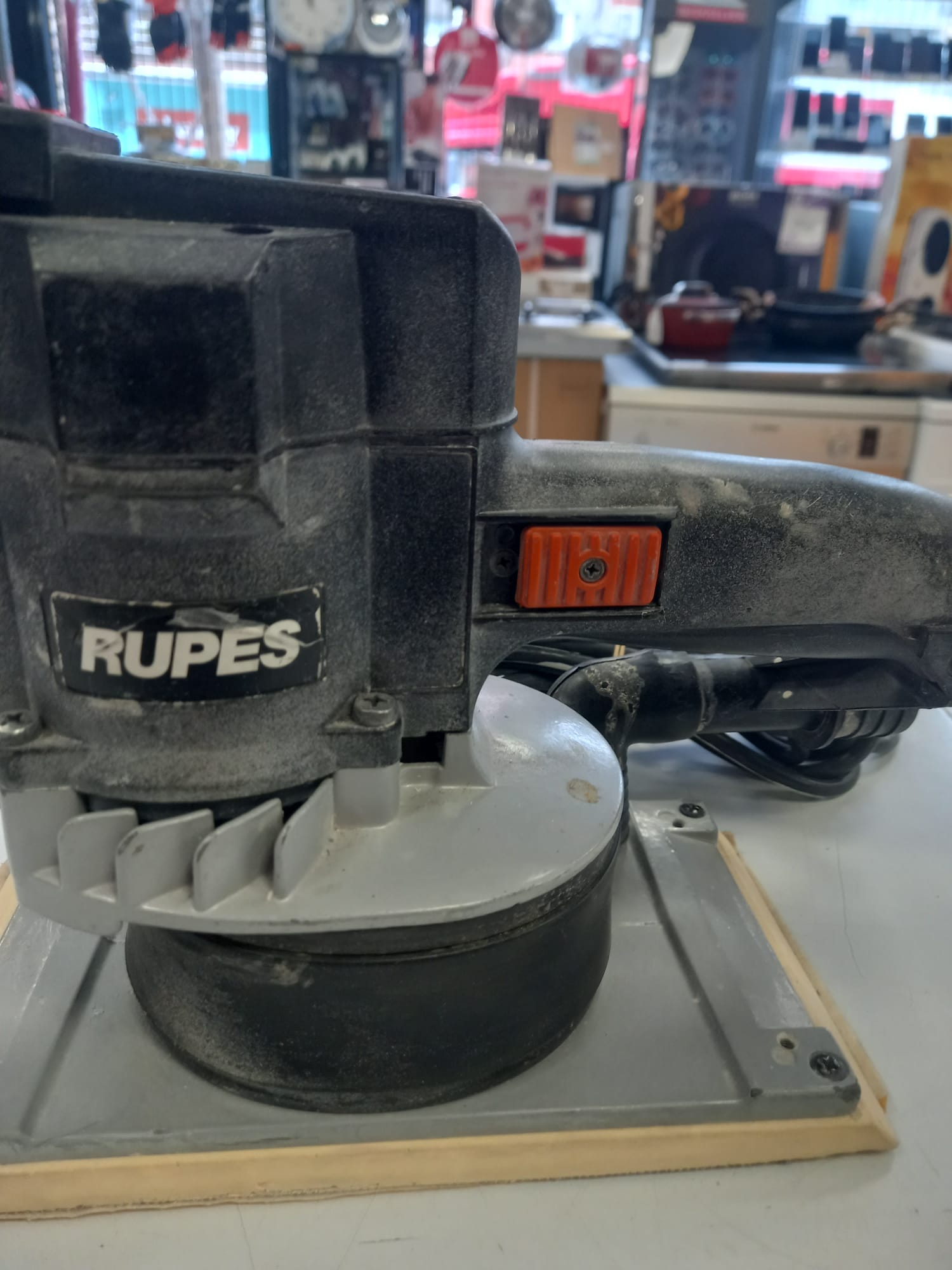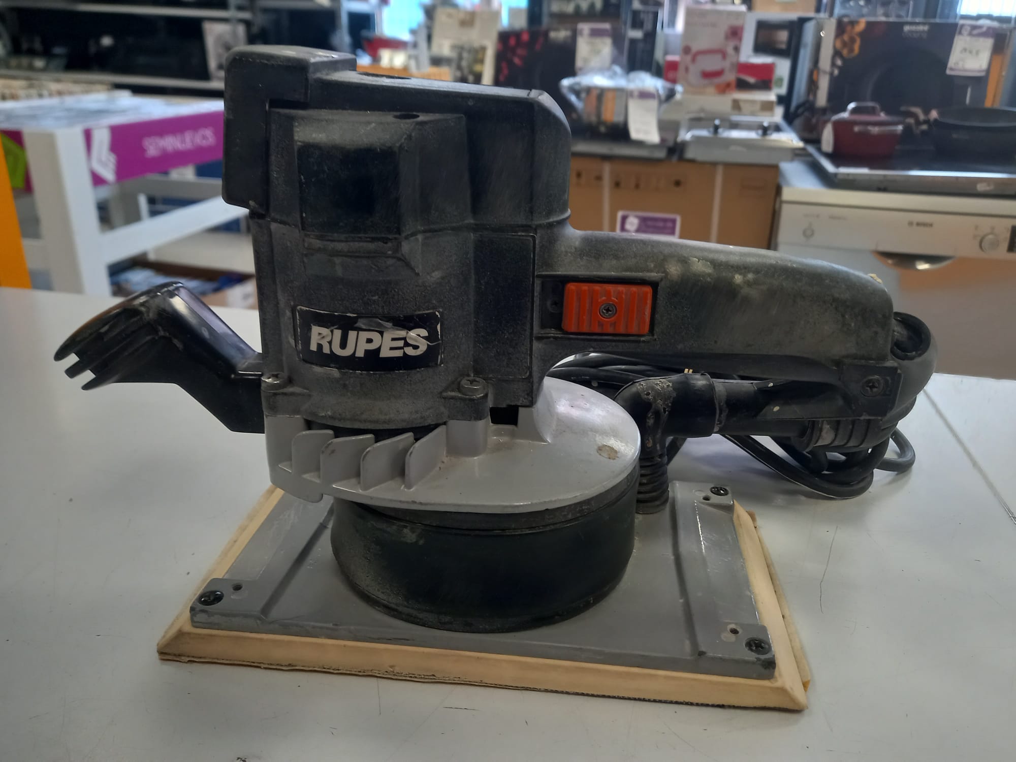 Lijadora orbital con aspiración Rupes, modelo SSPF. Potencia 350w. Plataforma de lijado 115x208mm.