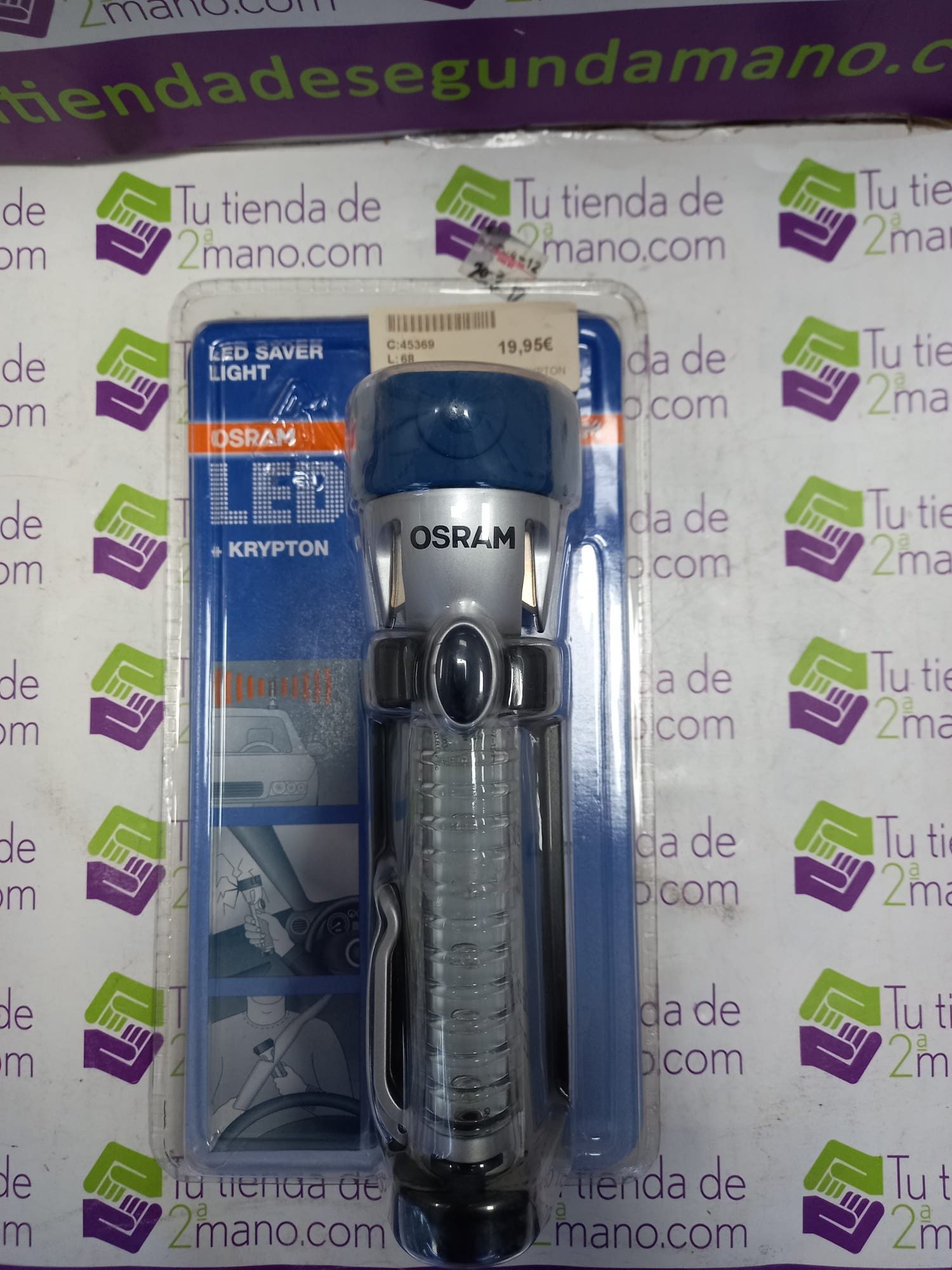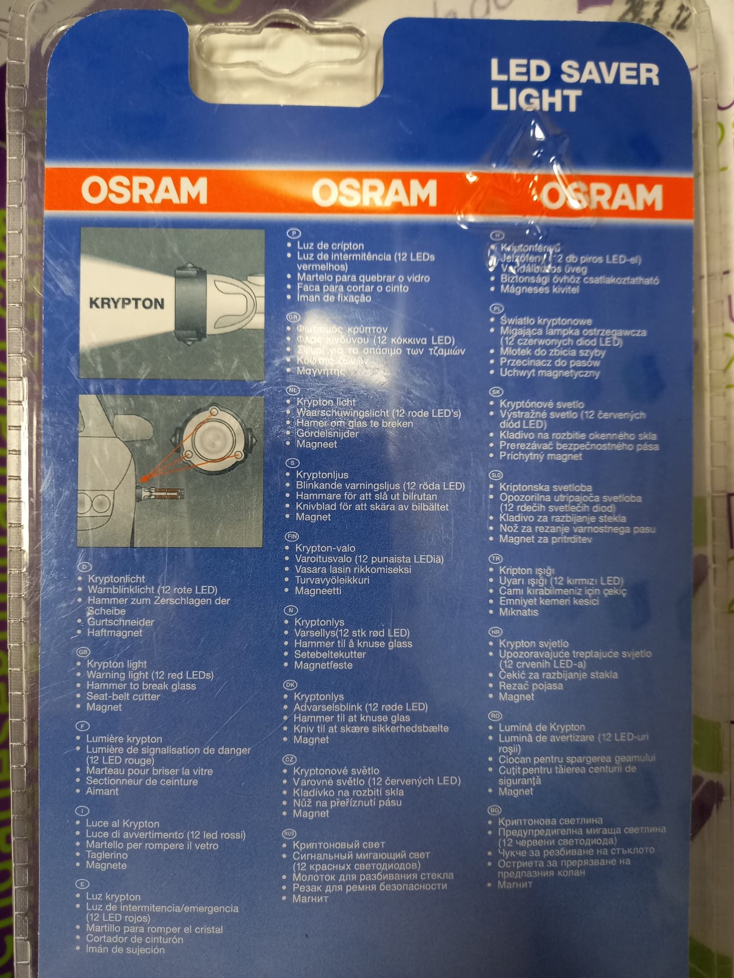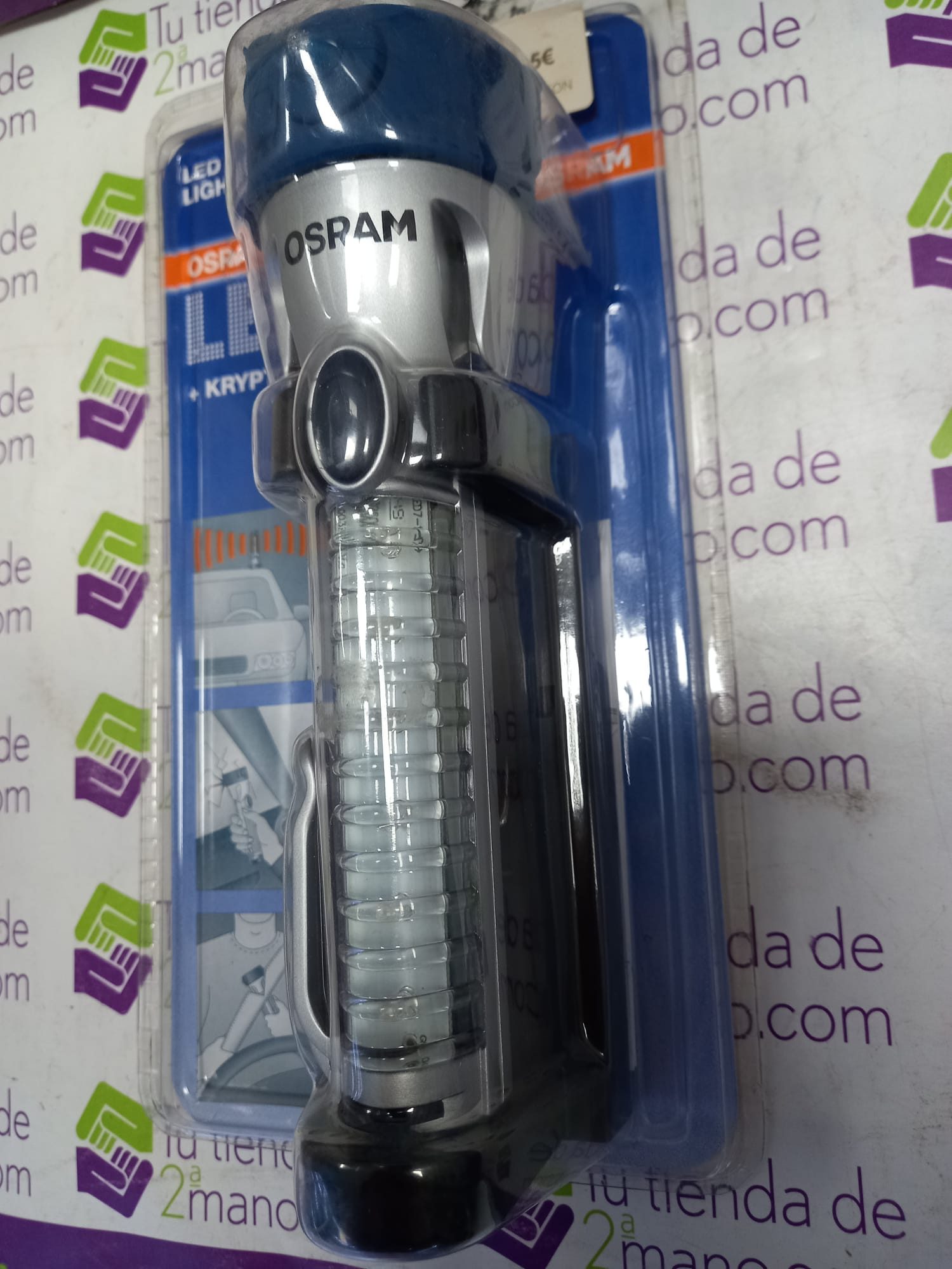 Linterna LED marca OSRAM + KRYPTON. Luz de intermitencia y emergencia. martillo para romper cristal. Cortador de cinturón. Imán de sujeción. Nueva a estrenar.