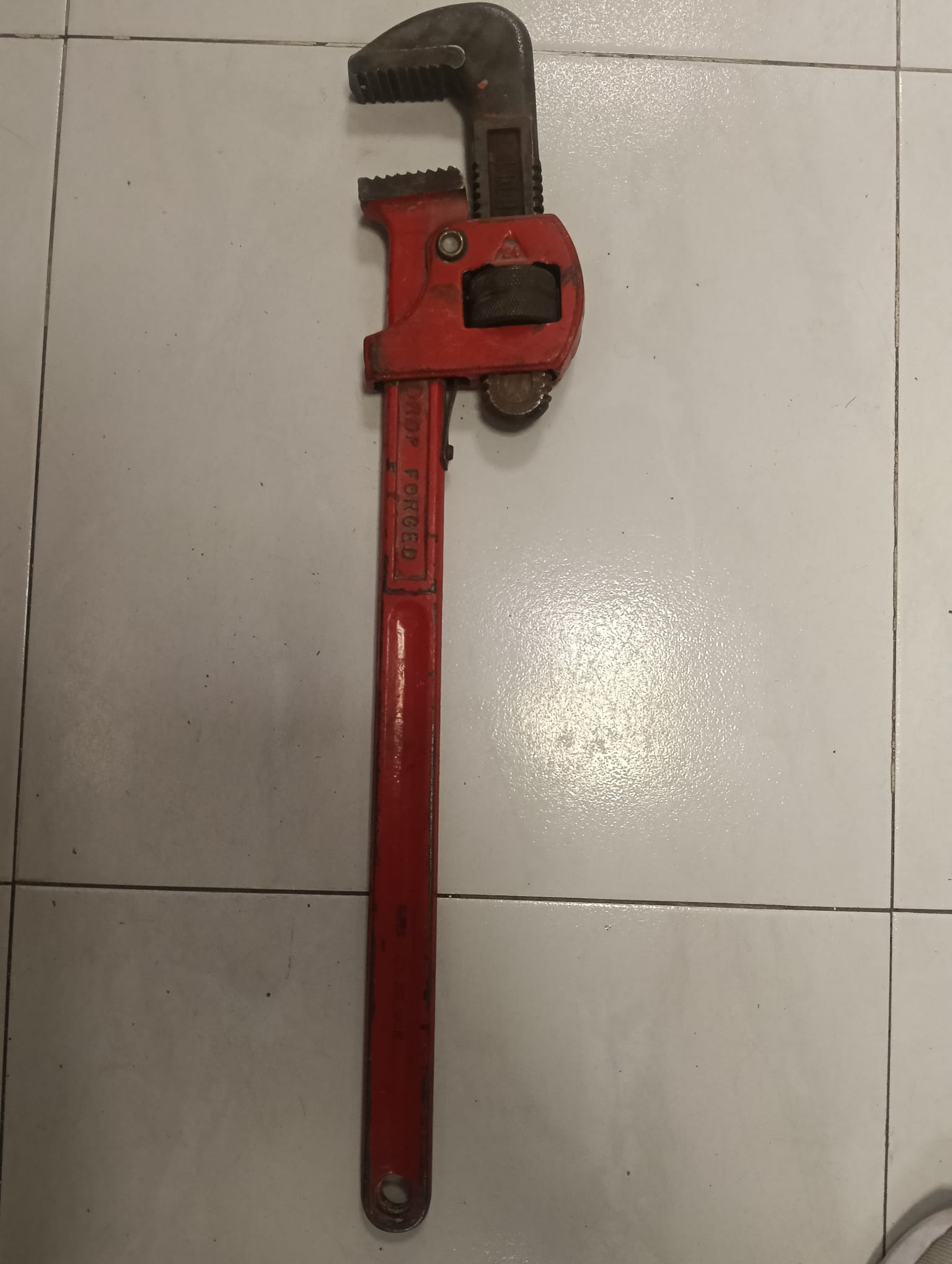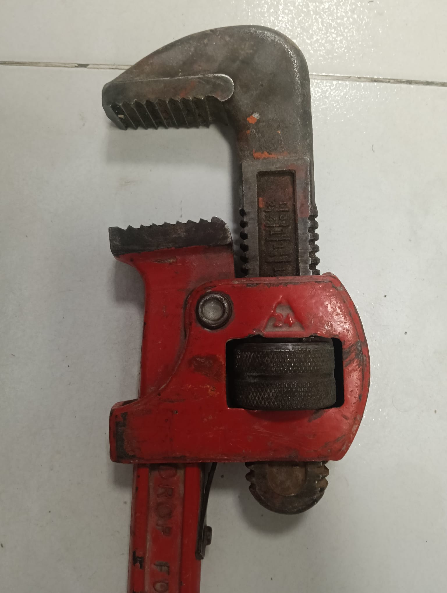 Llave grifa de 24 pulgadas, marca Super Maza. Herramienta robusta para trabajos de fontanería. Mandíbula dentada para un agarre firme. Cuerpo de metal resistente.