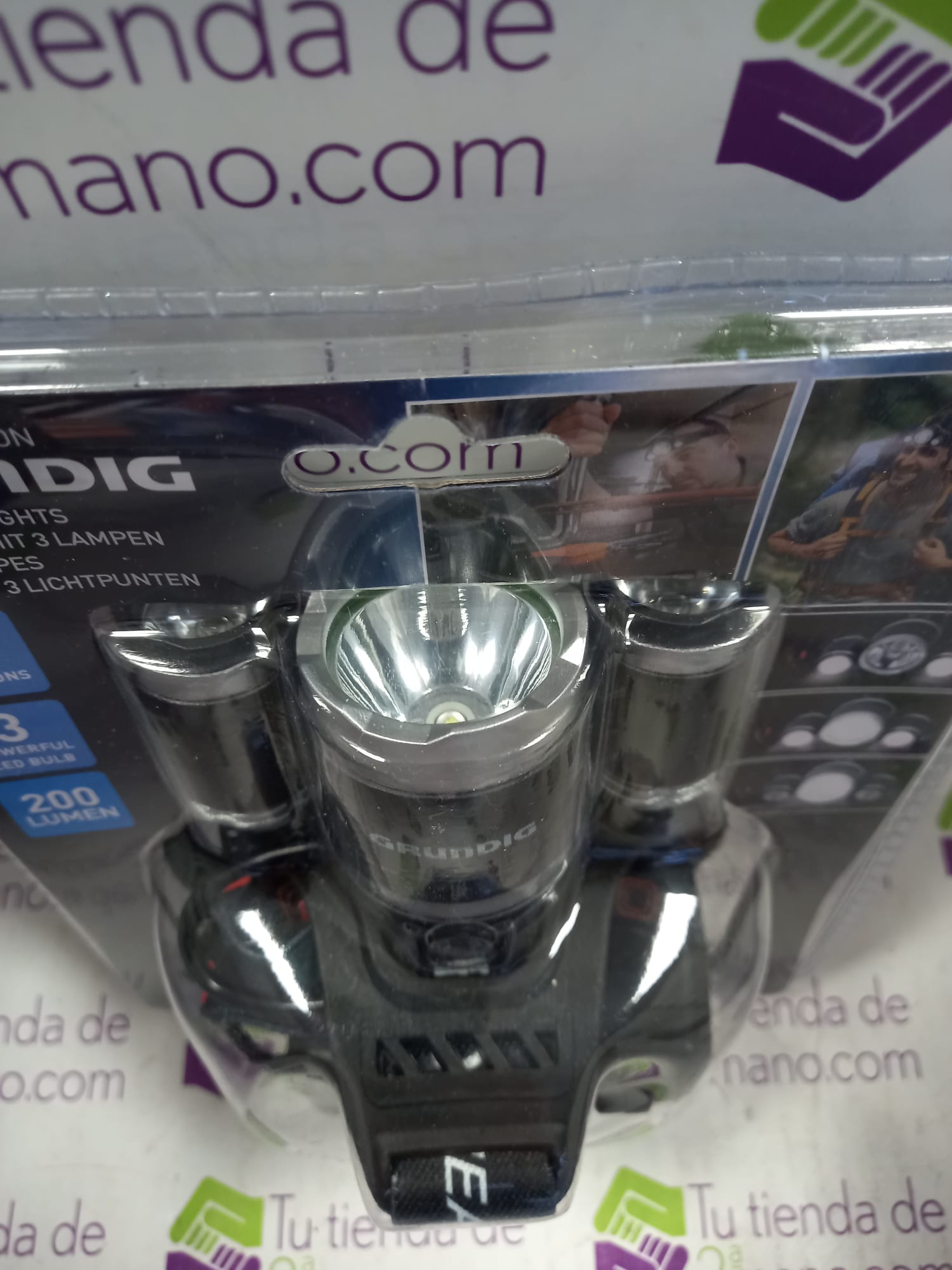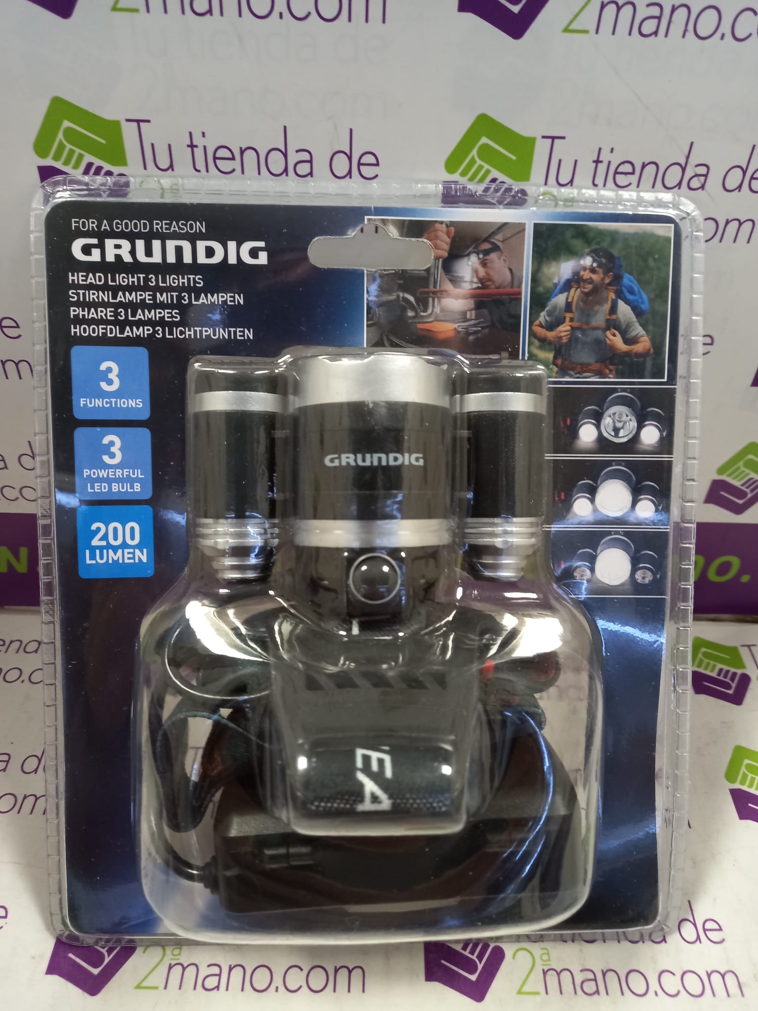 Luz frontal triple marca GRUNDIG. 2 faros LED laterales. Alcance: 20m. 200lm. Funciona con pilas. 4.5V. Nuevo a estrenar.