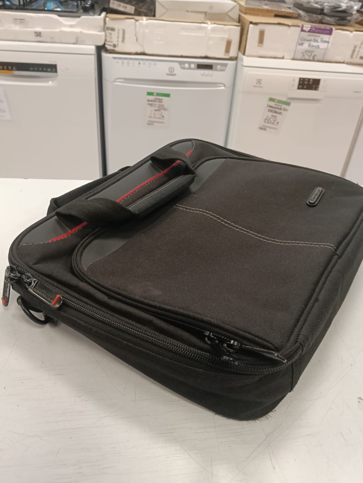 Maletín para portátil de la marca Targus. Color negro. Medidas aproximadas: 35 x 27 cm.