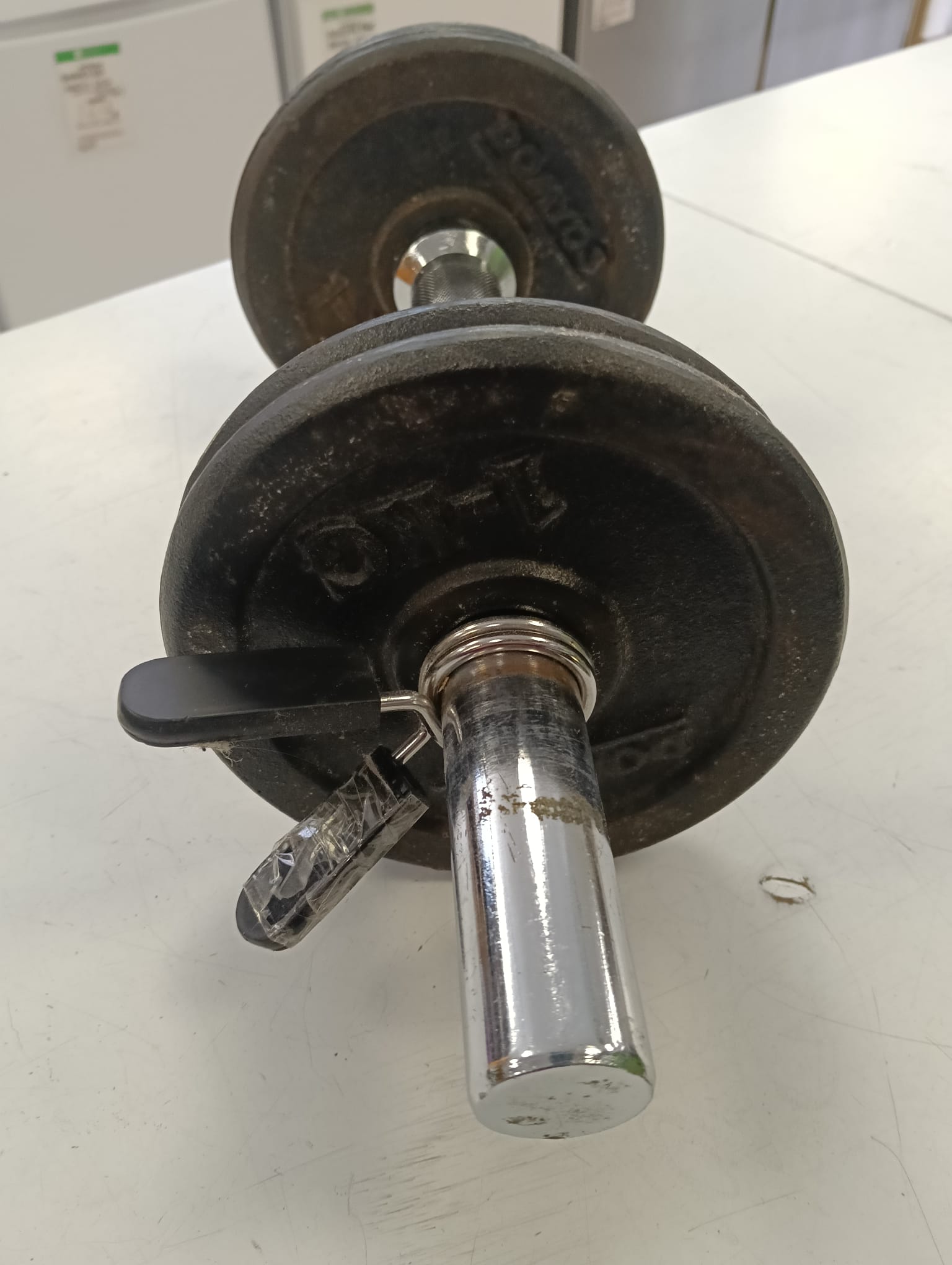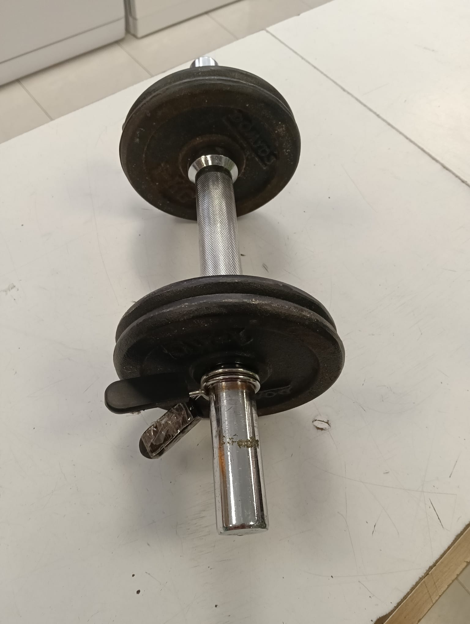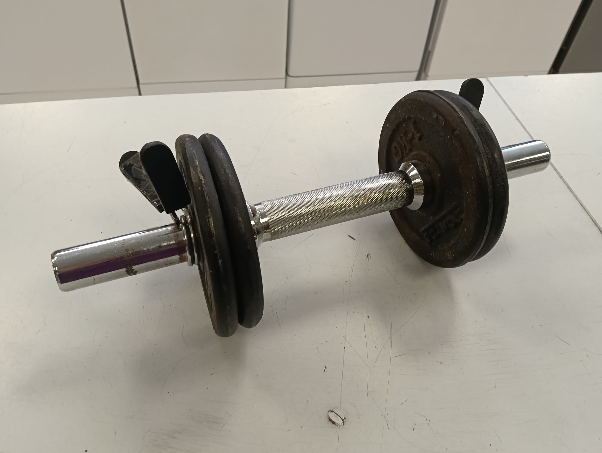Mancuerna de 6 kg con discos de peso.Discos de hierro fundido. Barra cromada con agarre moleteado. Cierre de seguridad para los discos.