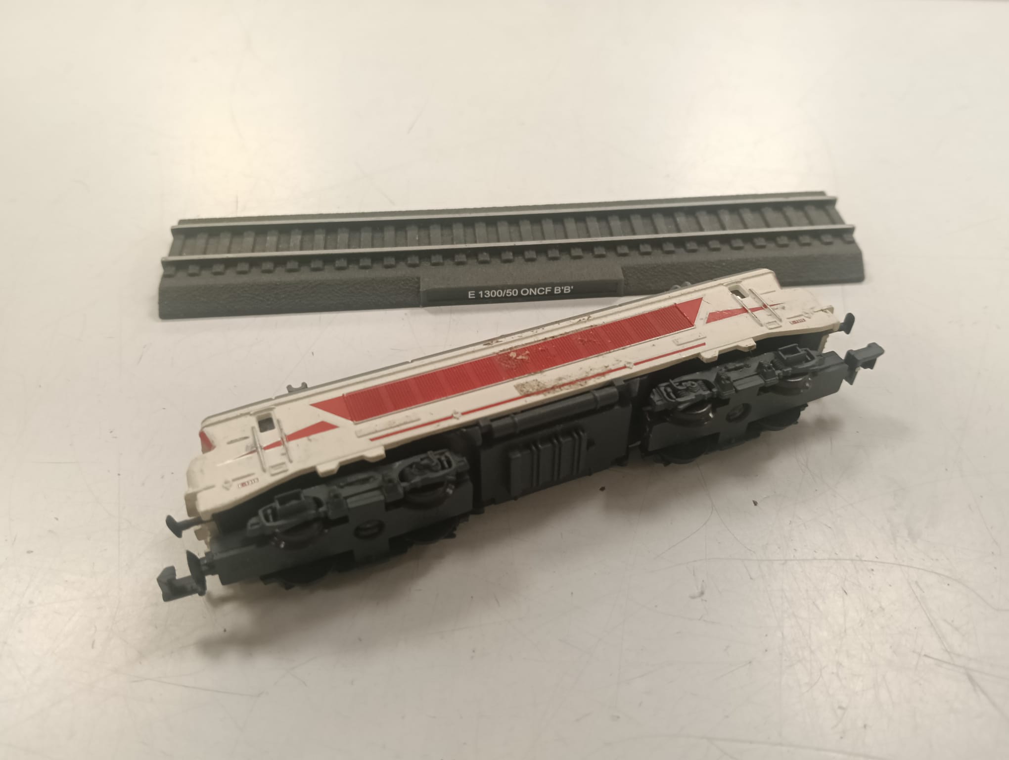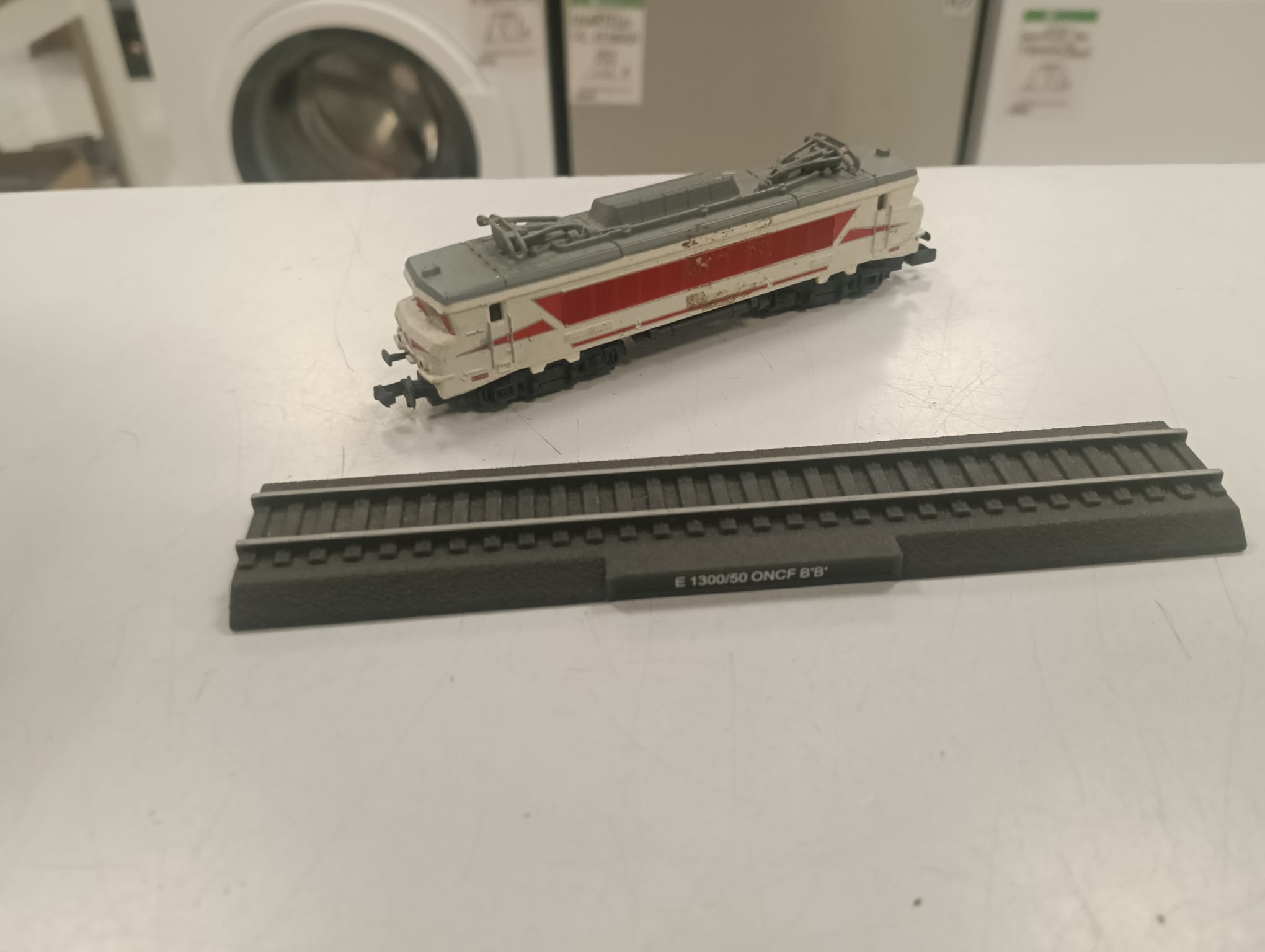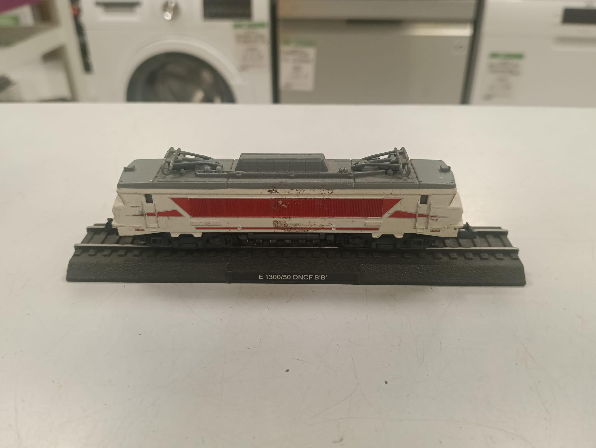 Maqueta de tren eléctrico modelo E1300/50 de la ONCF. Diseño detallado del modelo ONCF BB. Base expositora con vías.
