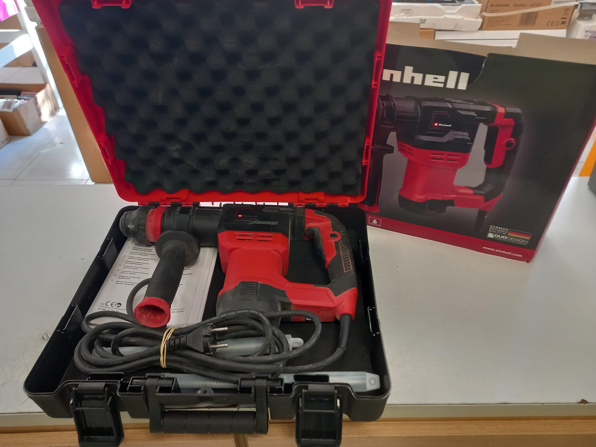 Einhell Martillo de demolición TE-DH 5 (5 J, portaherramienta SDS-plus, asidero amortiguado en vibraciones, asidero adicional ajustable flexible, incl. E-Box)