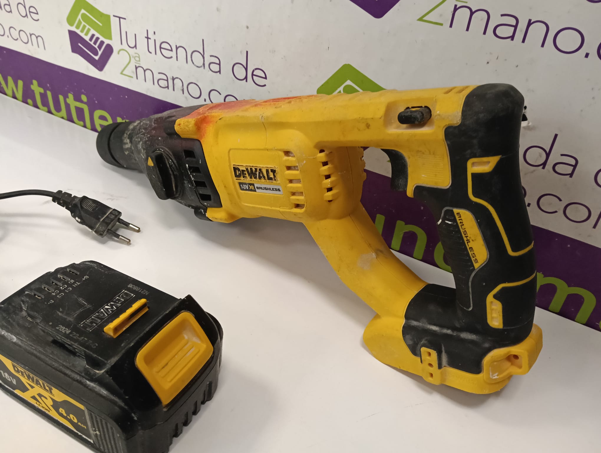 Martillo perforador Dewalt DCH133 junto con una batería de 4Ah. Incluye cargador Dewalt DCB115. Batería Dewalt XR Li-Ion 18V 4.0Ah