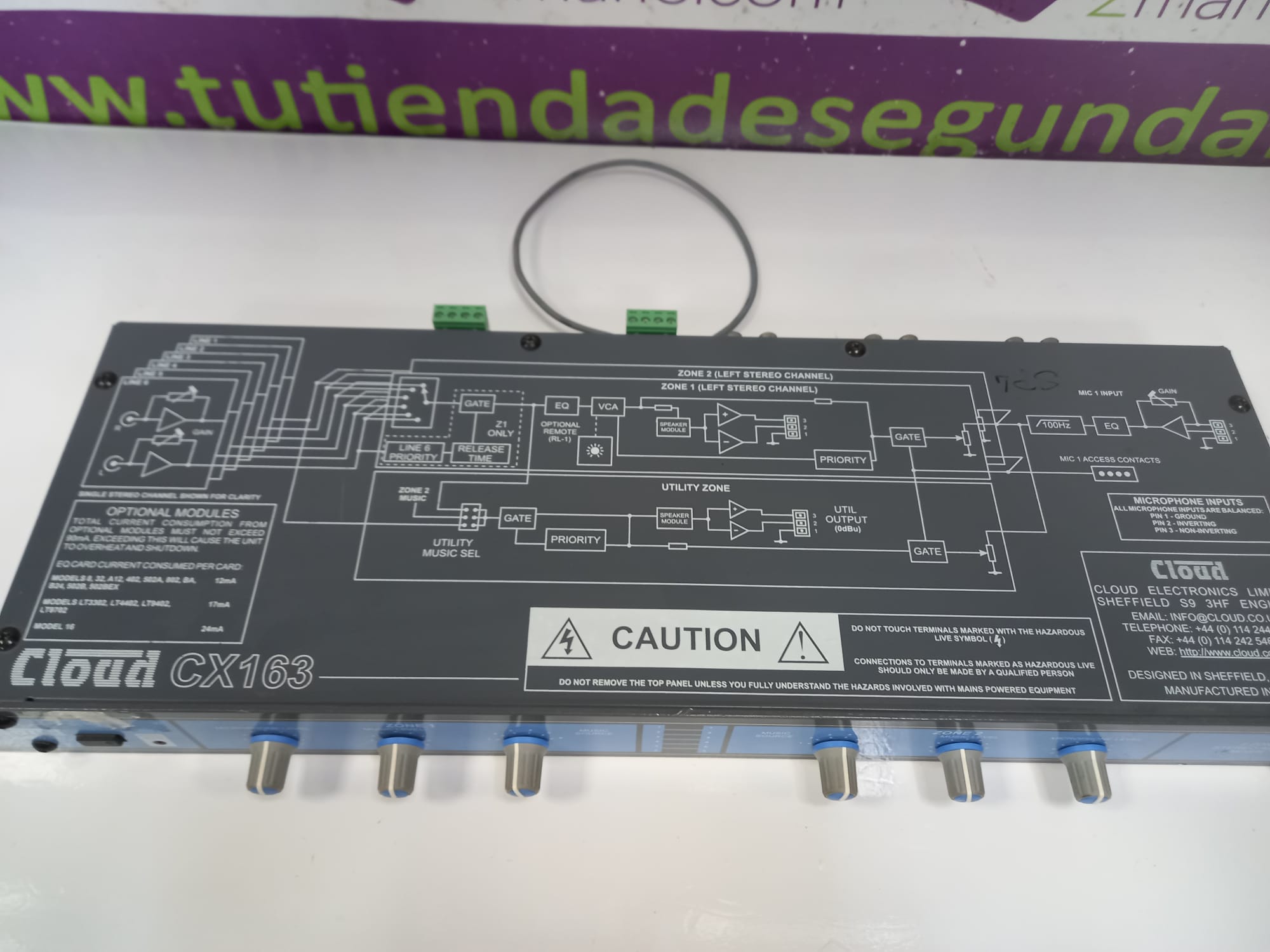 El Cloud CX163 es un mezclador de audio de dos zonas para montaje en rack. Tiene seis entradas de línea estéreo y una entrada de micrófono. Tiene dos salidas de zona separadas, y en cada una de ellas se puede mezclar cualquiera de las entradas de línea con la entrada de micrófono.