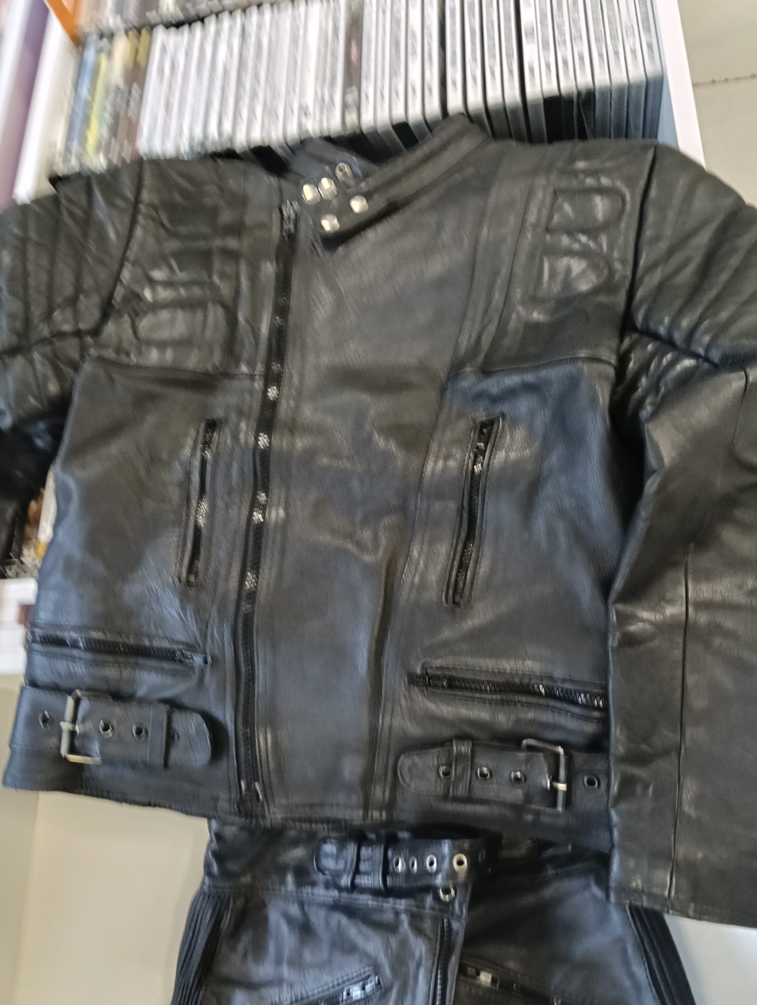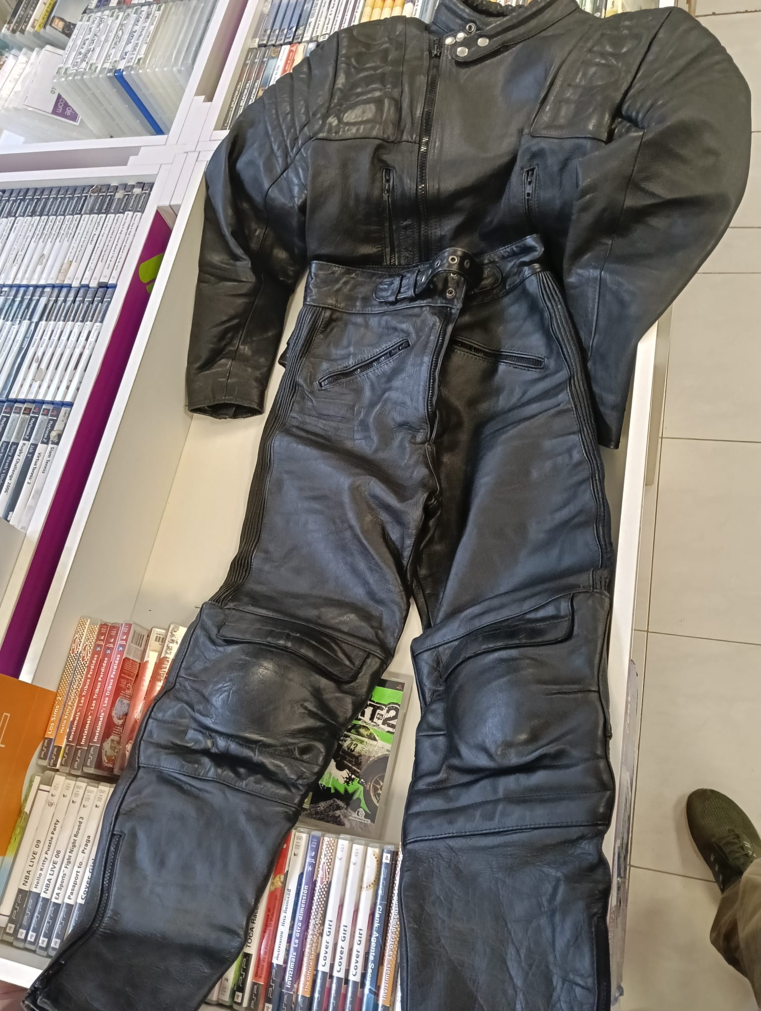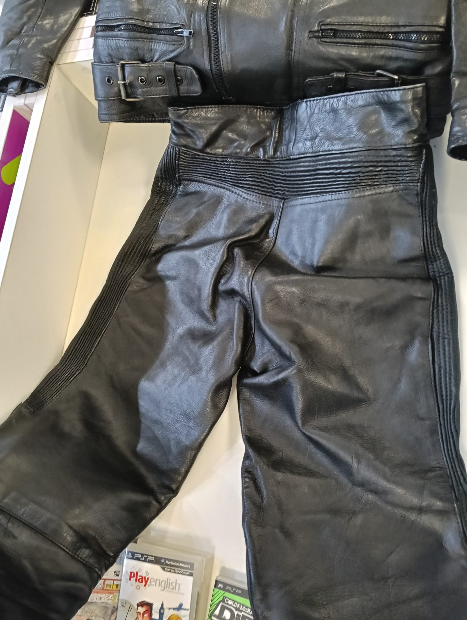 Mono de moto Kaltin en talla 40 (M). Ideal para pilotos. Fabricado en cuero negro. Diseño deportivo con protecciones. Cremalleras y hebillas de ajuste.
