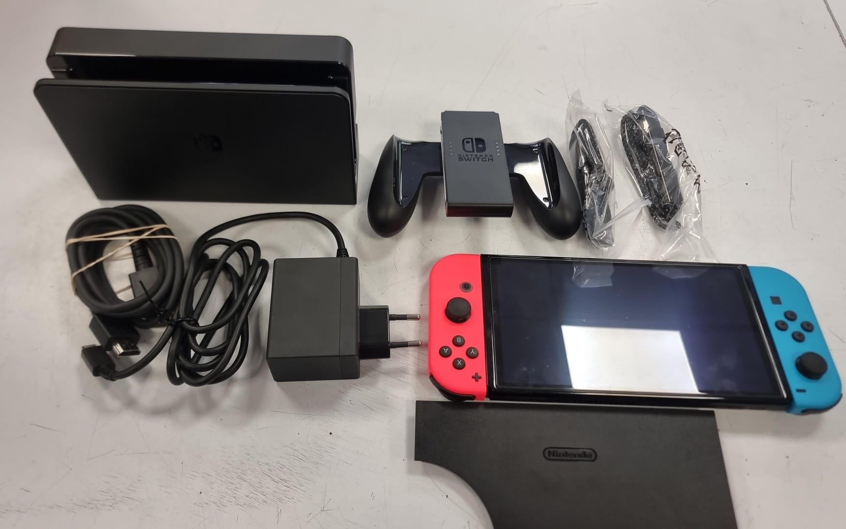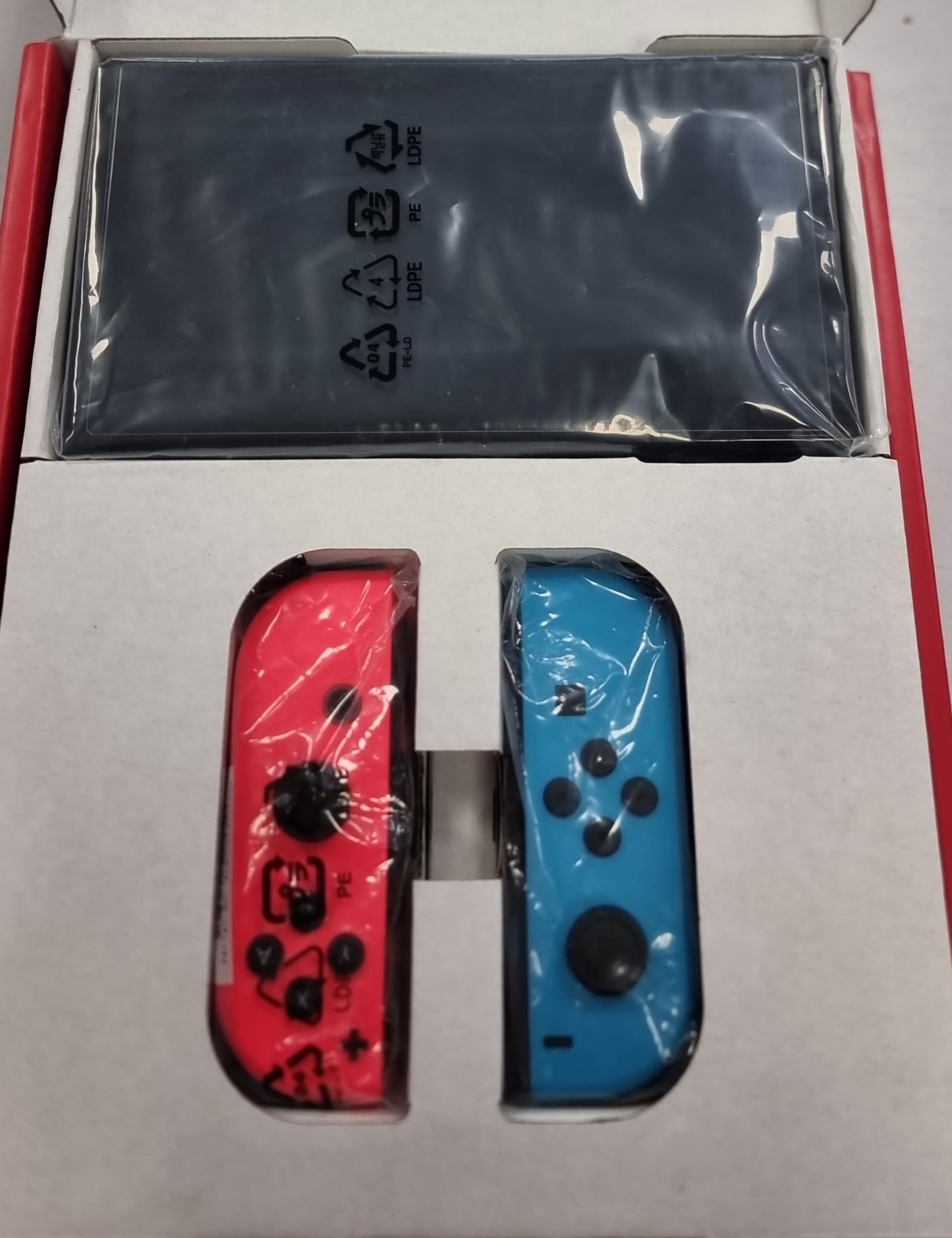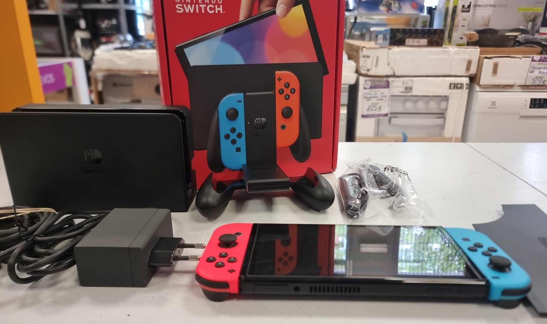Consola Nintendo Switch modelo OLED.Joy-Con azul. Joy-Con rojo.