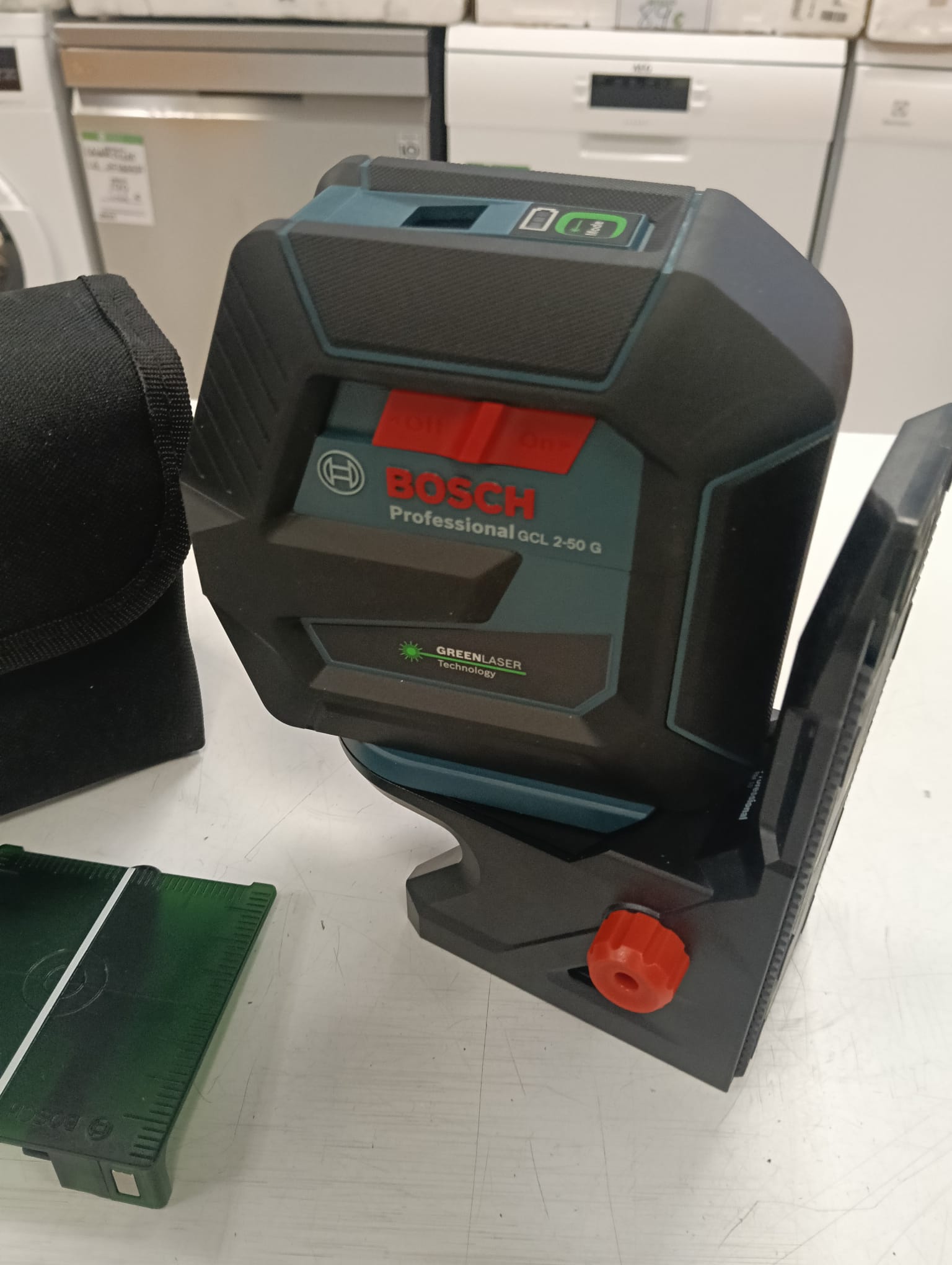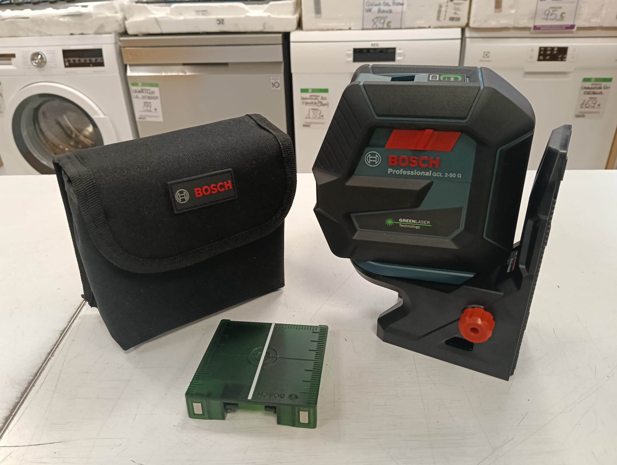 Nivel láser, modelo BOSCH PROFESSIONAL GCL 2-50G. Línea verde. Sin uso. Añade soporte y funda. Funcionamiento con pilas.