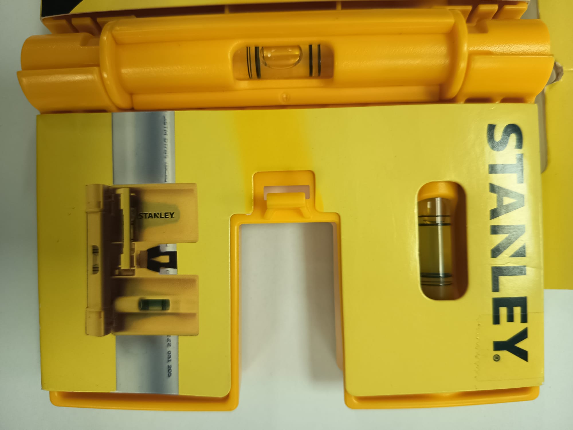 Nivel Para Postes Y Tuberías Stanley. Nivel con forma de esquina a 90° permite nivelar postes, columnas y cañerías. Contiene 4 imanes para sujetarlo en el metal.