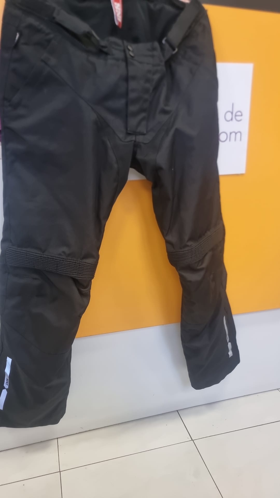Pantalón de moto talla 3XL con protecciones.Color negro.Cierre de cremallera y botones. Bolsillos frontales.Ajuste elástico en cintura y tobillos. Detalles reflectantes en las perneras.