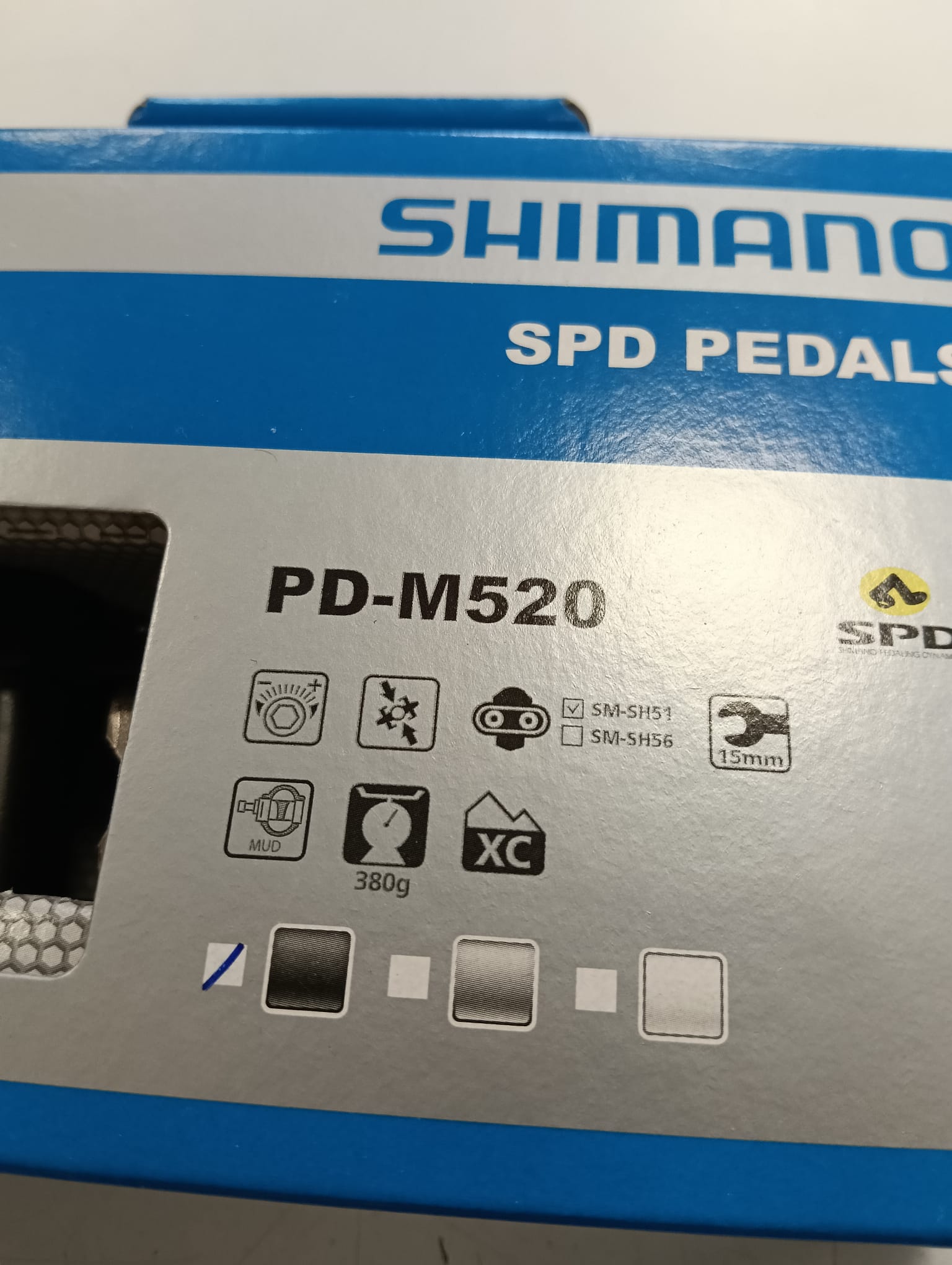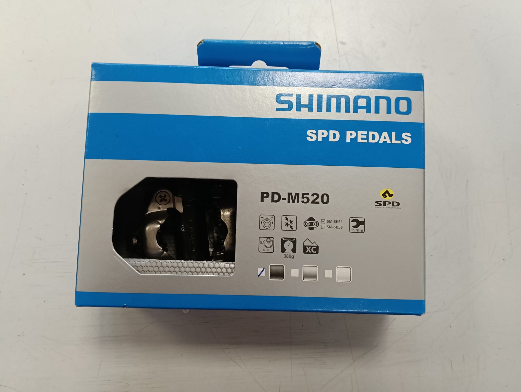Pedales Shimano PD-M520 para ciclismo. Modelo SPD. Incluye calas SM-SH51/SM-SH56.Llave de montaje de 15mm.