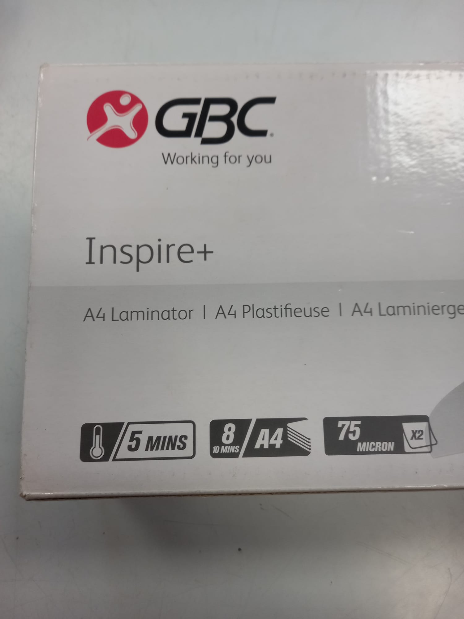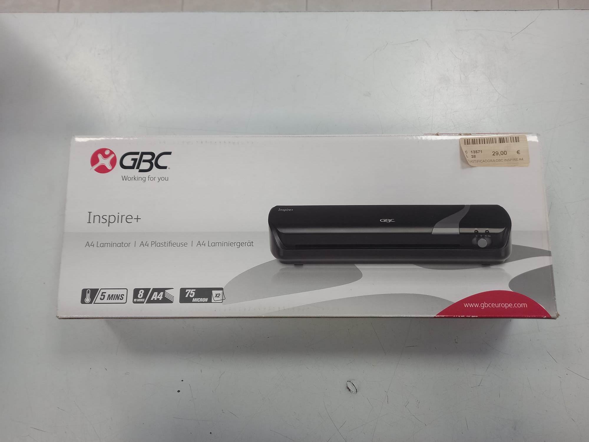 Plastificadora GBC Inspire A4- ACP. Plastificadora tamaño A4. Ligera y compacta. Uso sencillo, por interruptor y emplea carteras de 2x80 micras.