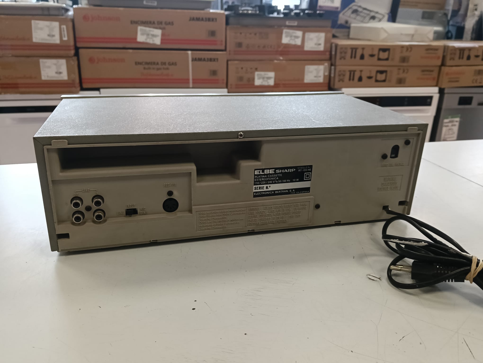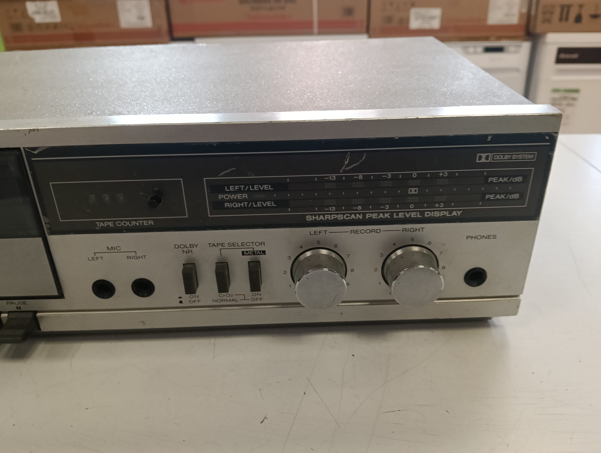 Platina de cassette estéreo Sharp RT-155.Diseño plateado y negro- Indicador de nivel de pico.