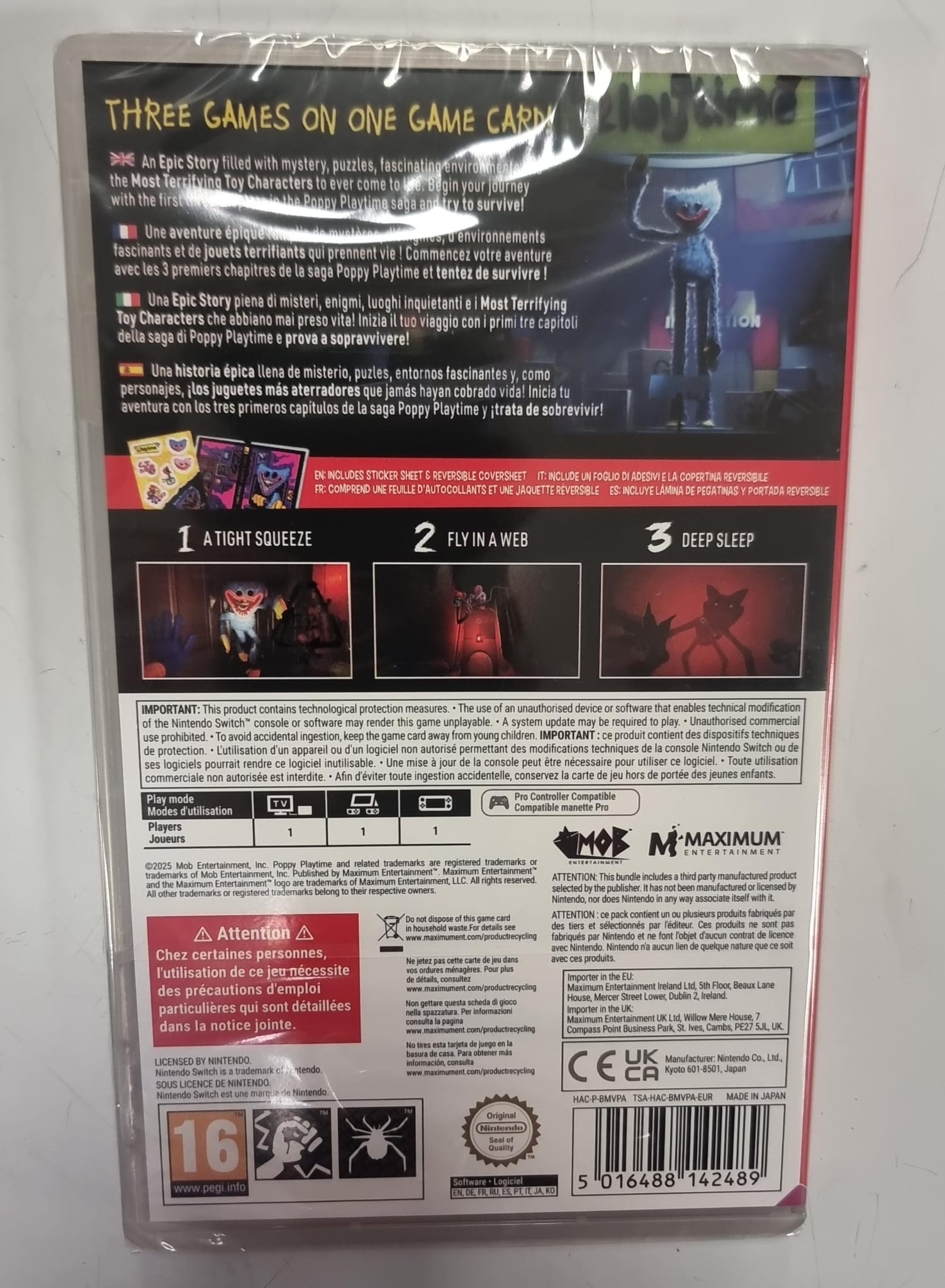 Pack triple del videojuego Poppy Playtime para Nintendo Switch. Incluye los capítulos 1, 2 y 3. Nuevo precintado.