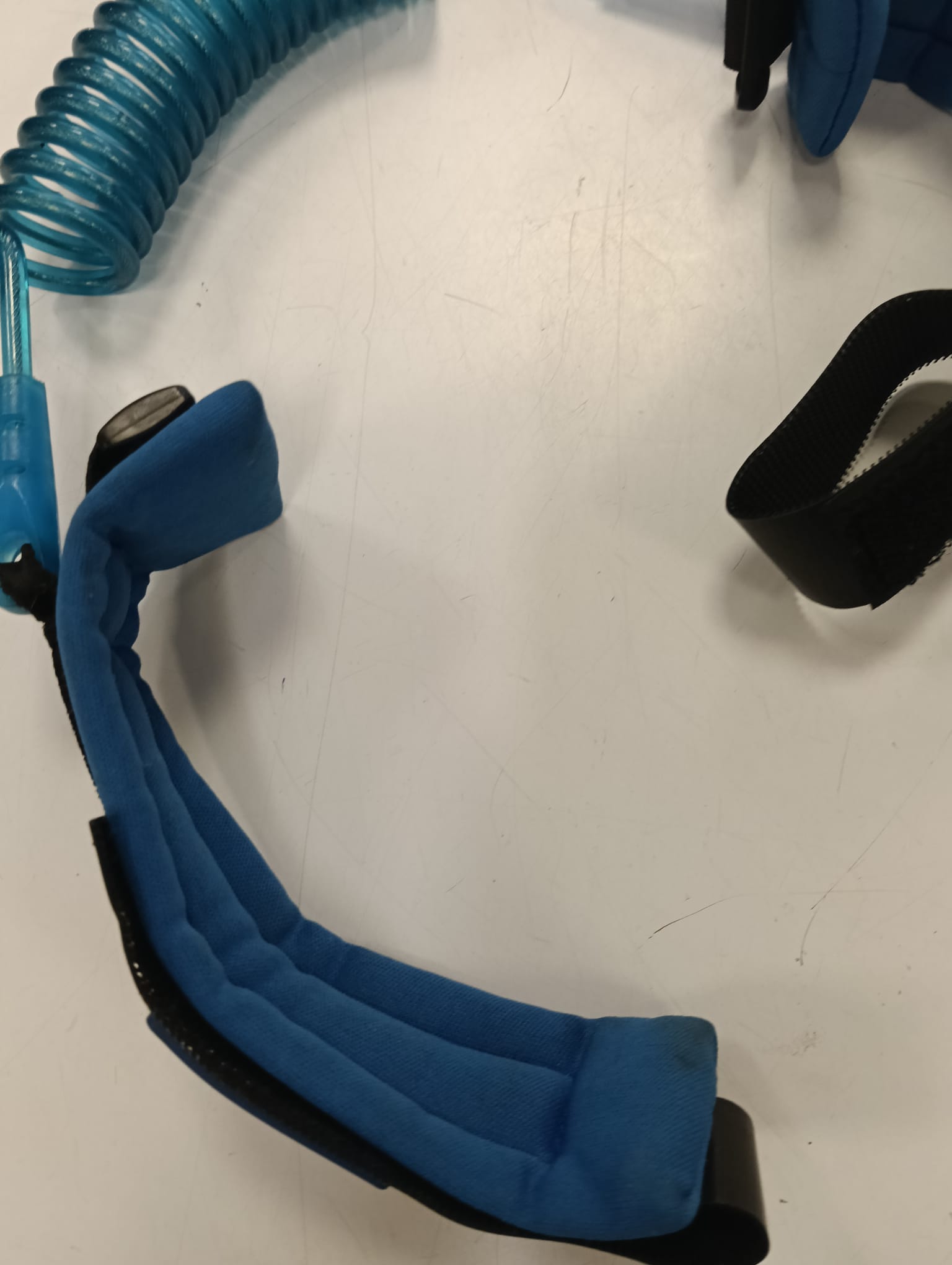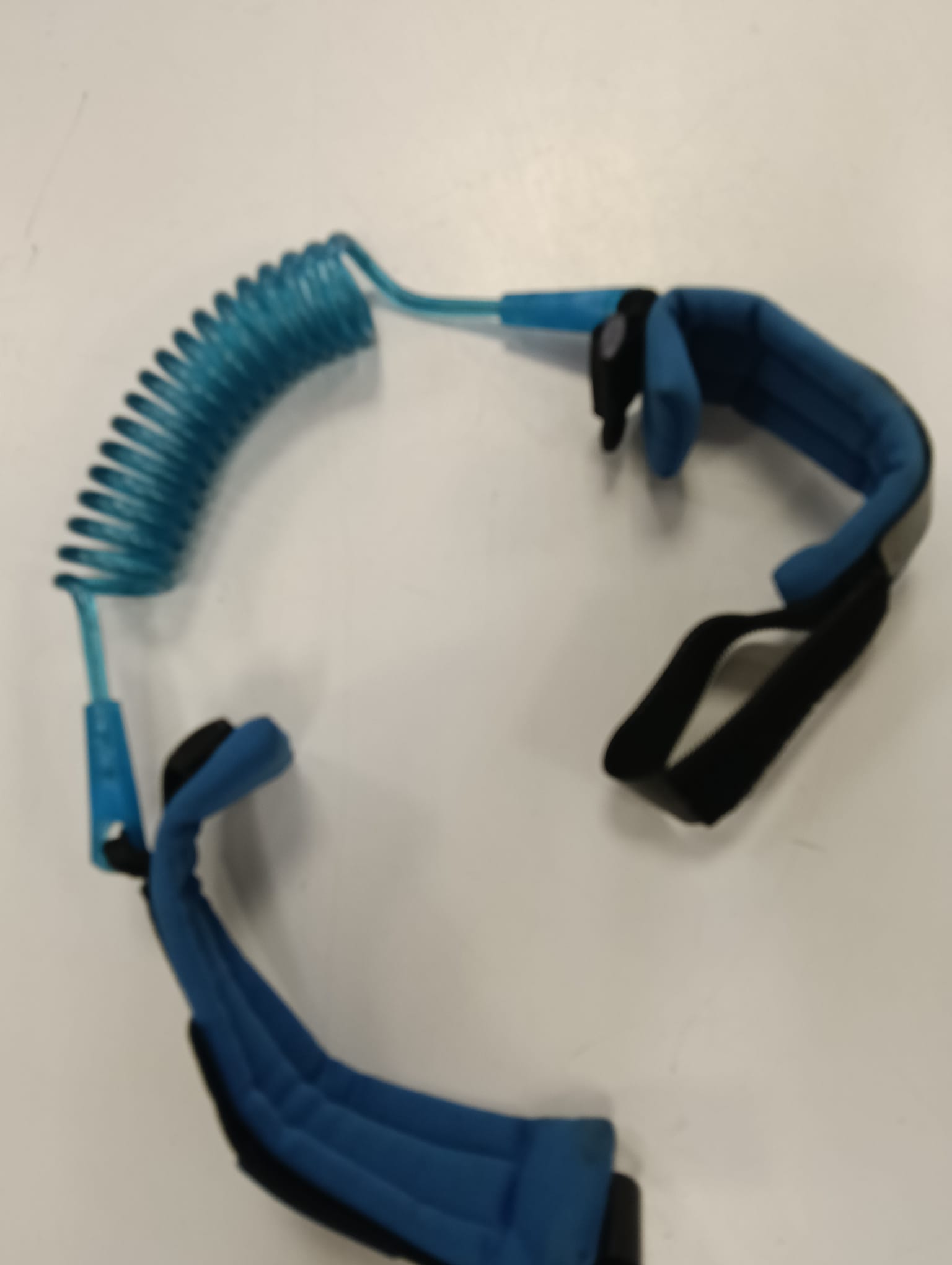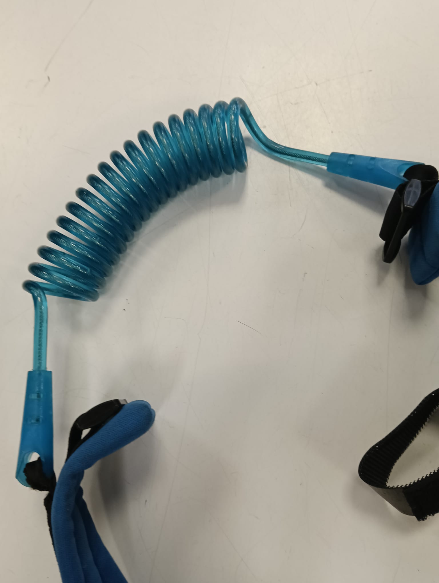 Pulsera de seguridad para niños, ideal para prevenir pérdidas.Color azul. Correa ajustable.Cable en espiral. Cierre de velcro.