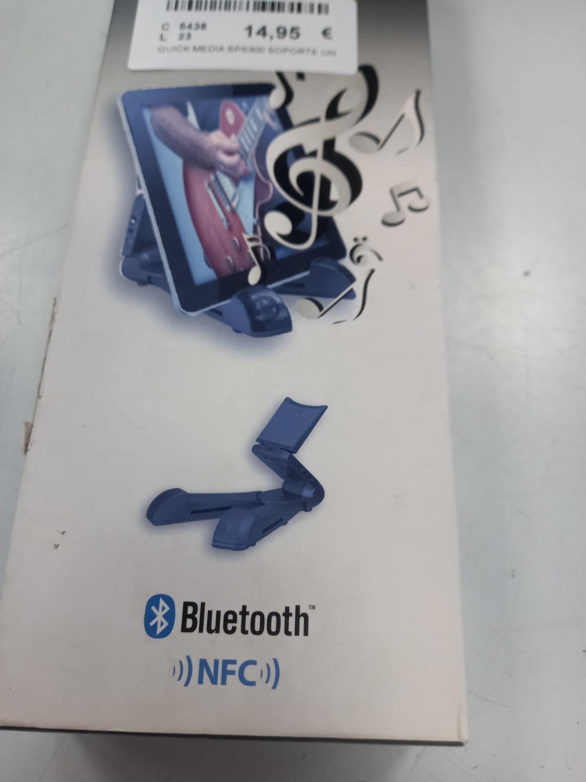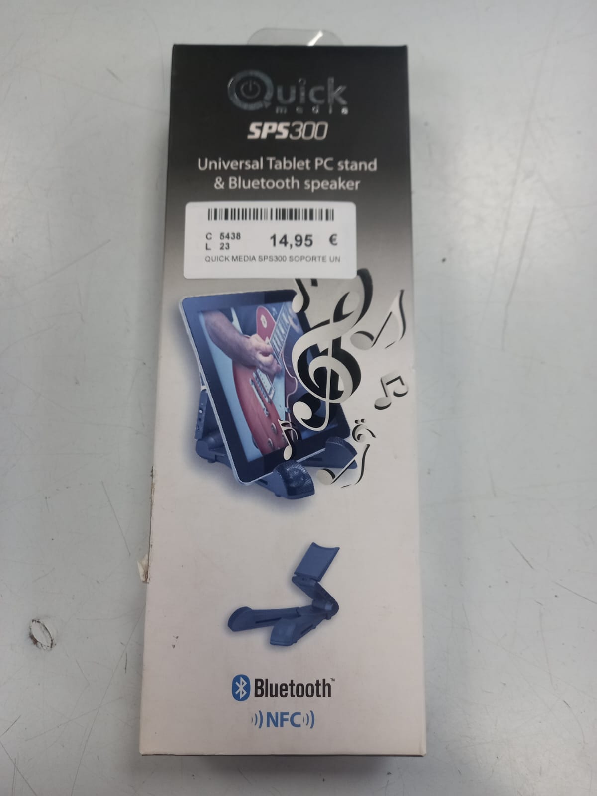 Marca Quick Media SPS300-Soporte / Base universal para Tablet/ PC con Altavoz Bluetoot. Buena calidad de sonido. Instalación rápida. USB. Fácil uso. ?25.5 x 9 x 4 cm.