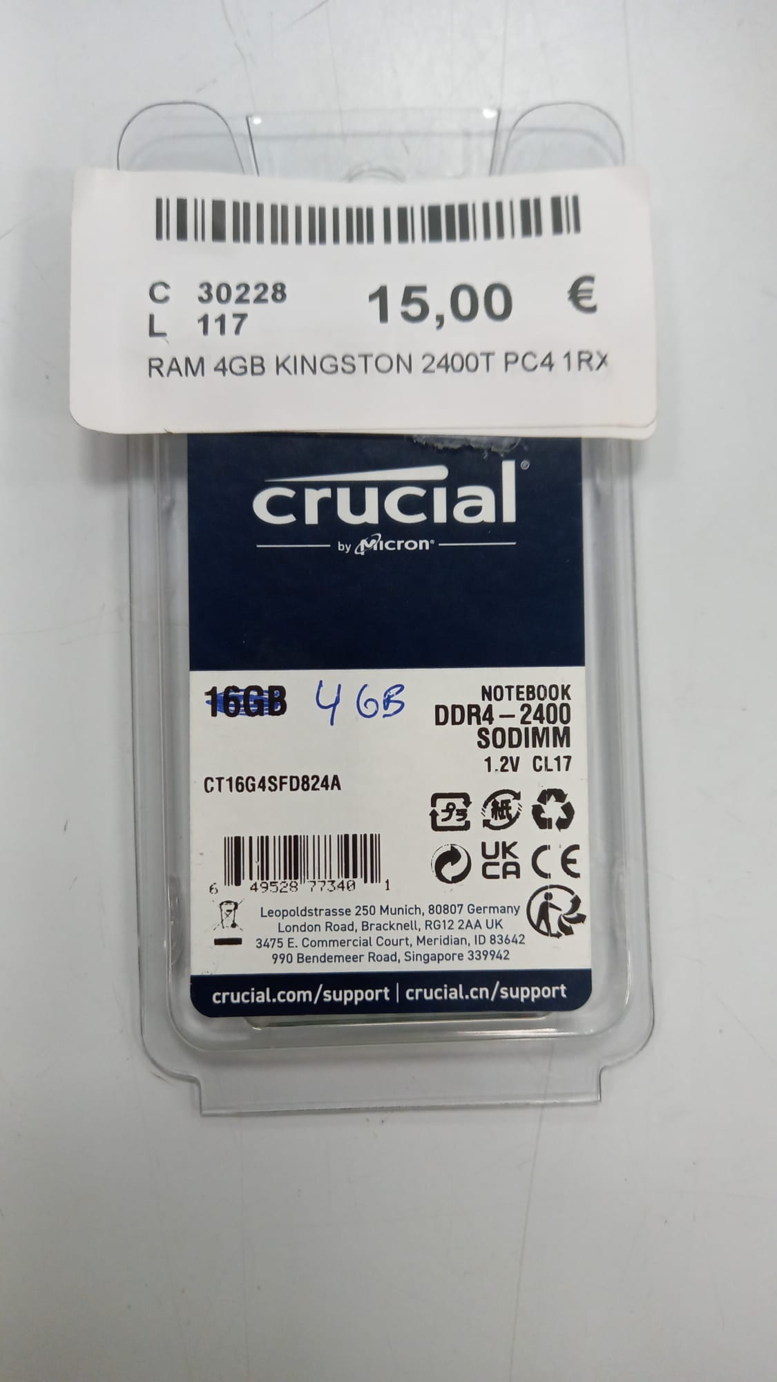 Memoria Ram Kingston DDR4-2400T 4GB 1Rx8.