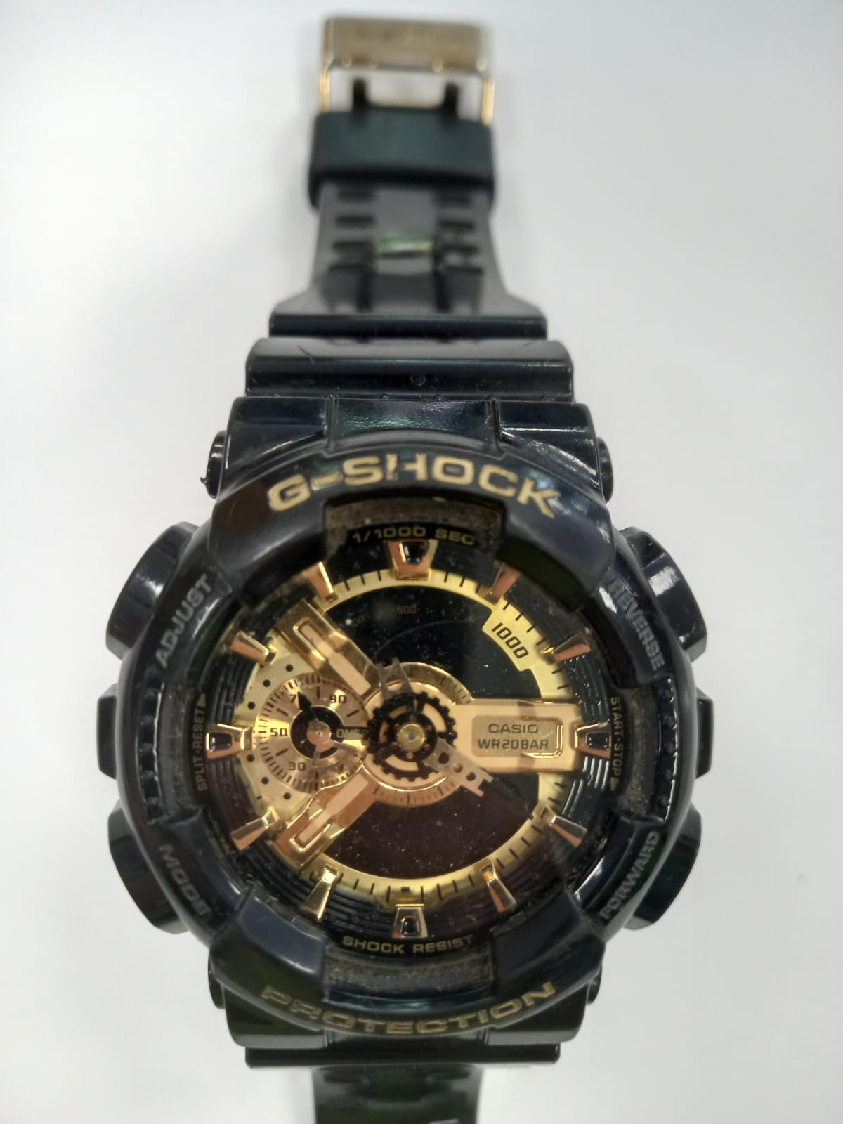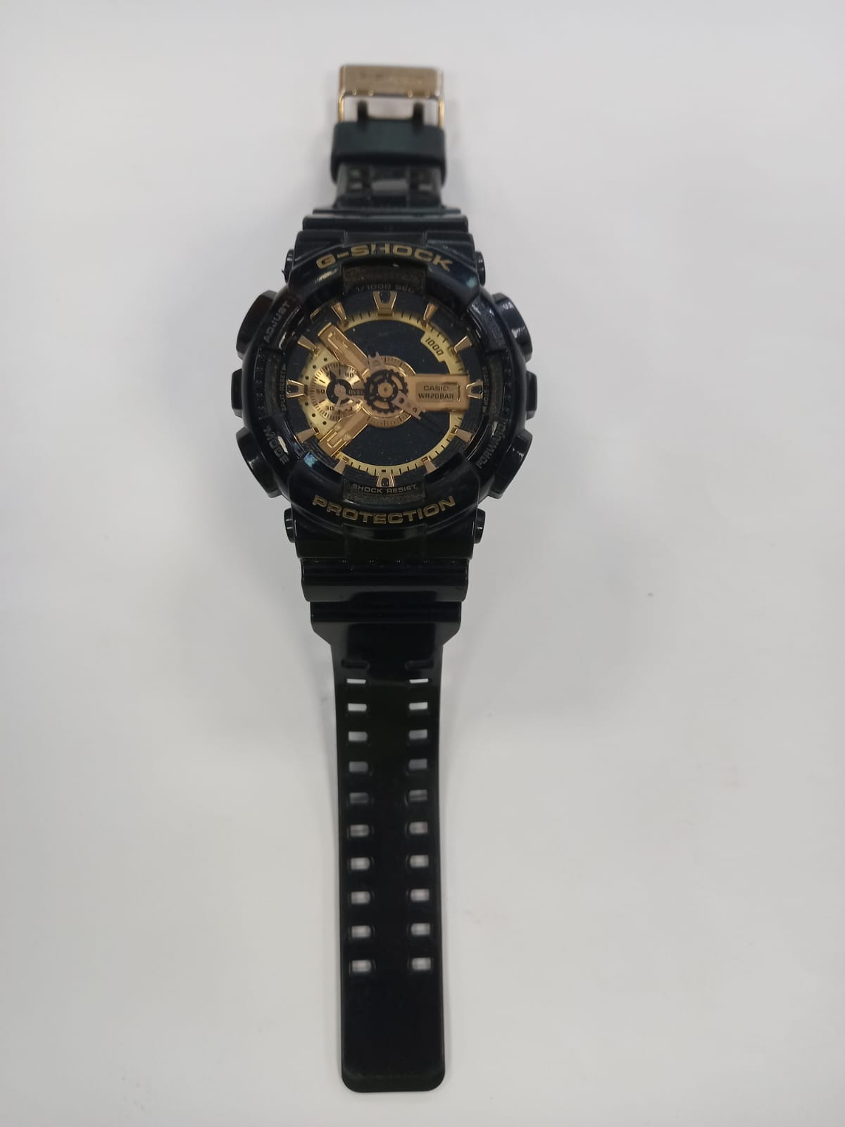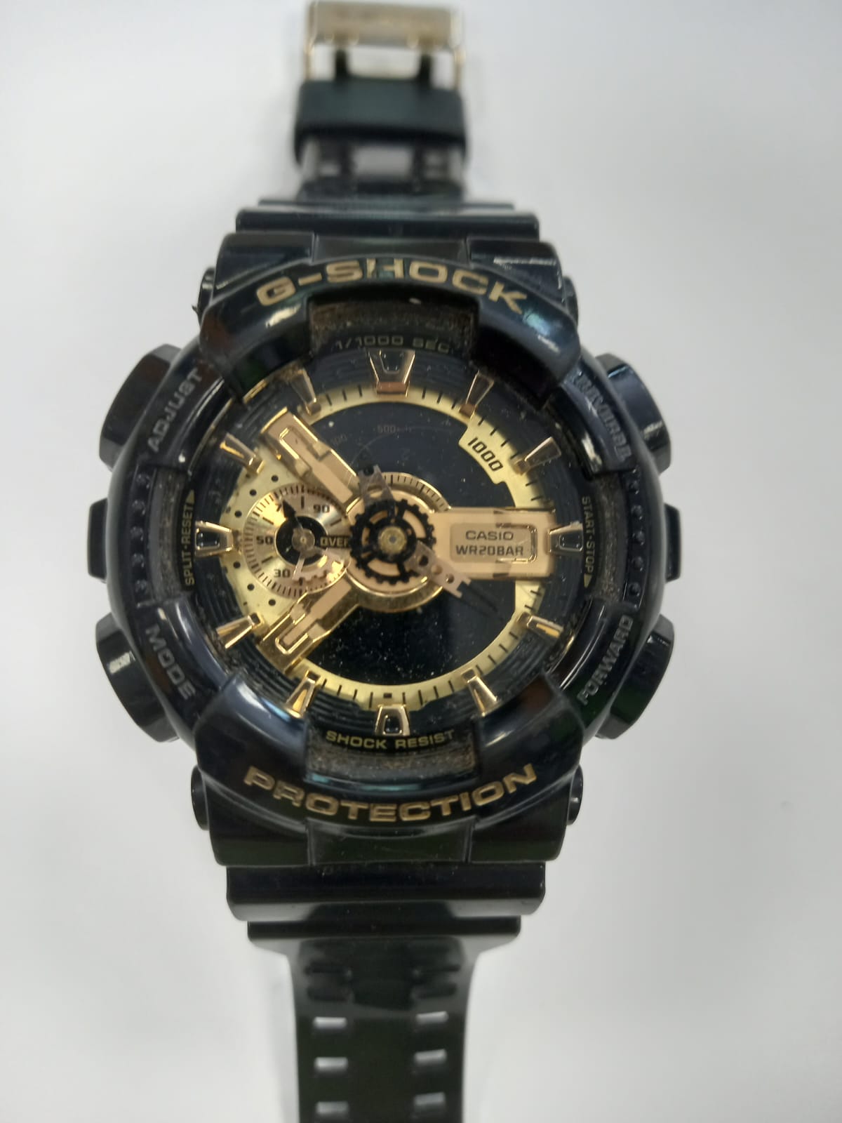Un modelo de la serie G-SHOCK en negro y oro, que continúa en búsqueda de la resistencia. Utiliza el GA-110 como modelo base, que tiene funciones y diseño originales. Dispone de un velocímetro y un diseño tridimensional de la esfera con piezas pequeñas en capas. El color es un oro brillante energético sobre un cuerpo G-SHOCK negro característico y rústico.