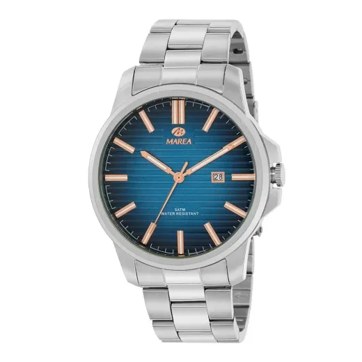 RELOJ MAREA CABALLERO STEEL B36213/2. Producto nuevo. Acero Analógico. Caja de acero de 42mm de diámetro. Bisel plateado. Brazalete de acero. Cierre desplegable. Esfera azul. Multifunción, calendario. Cristal mineral. Movimiento quartz.