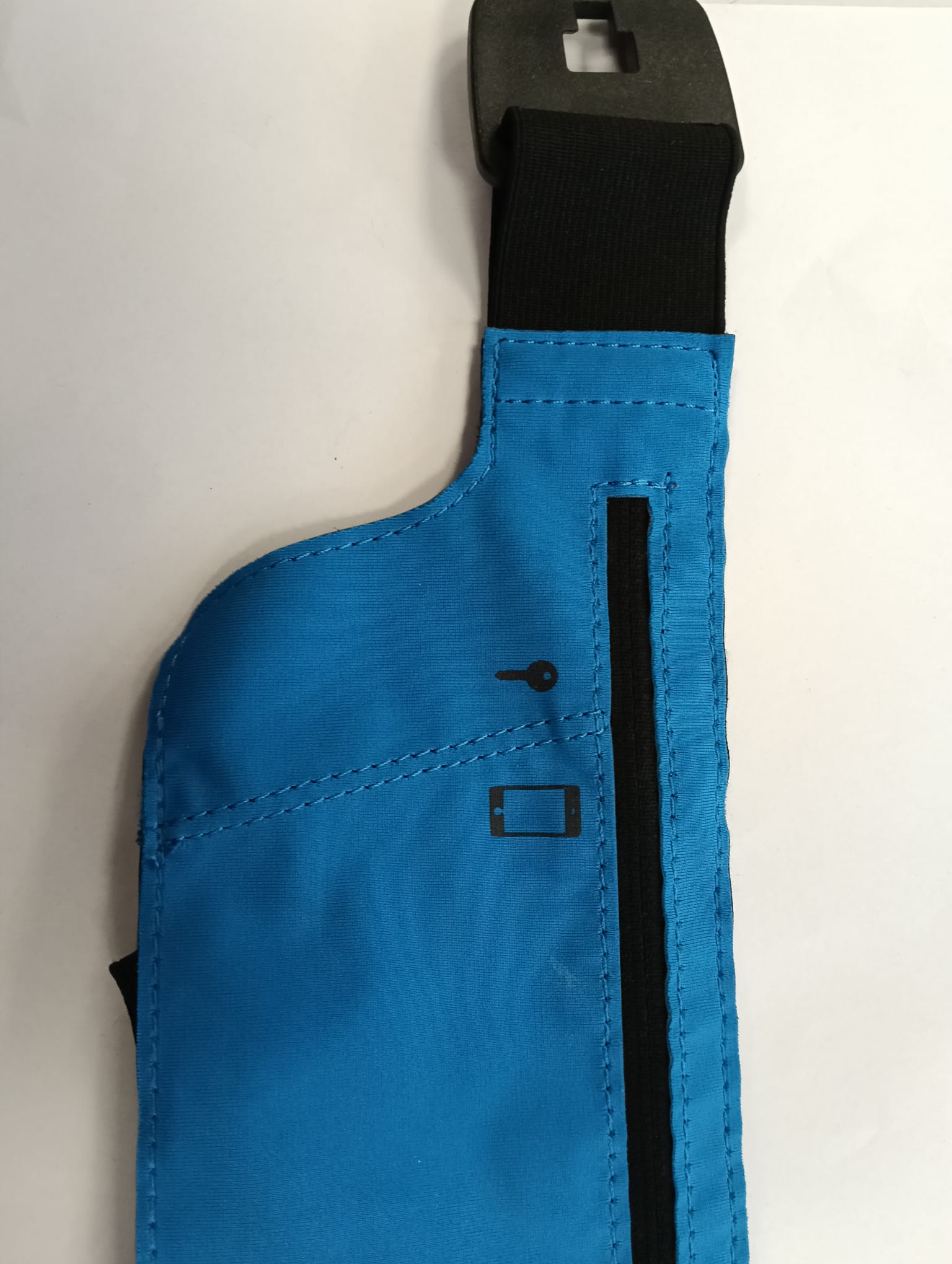 Riñonera deportiva de color azul, ideal para llevar tus pertenencias mientras corres. Diseño con cremallera.Compartimento para móvil.Incluye icono de llave.