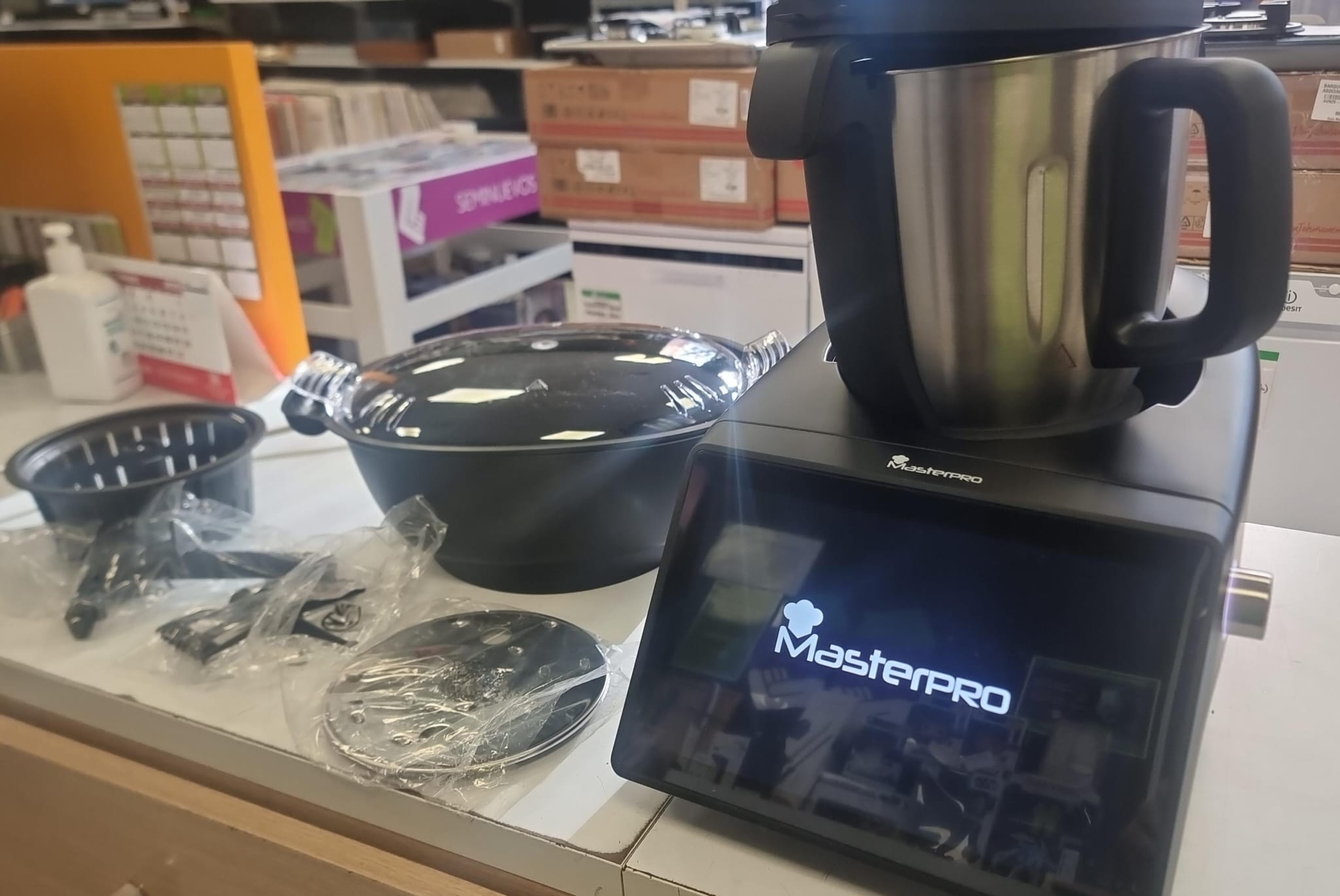 Robot de cocina MasterPRO Multicooker Max Touch en color negro. Incluye varios accesorios para una cocina versátil. Robot de cocina multifunción. Diseño moderno y elegante. Incluye accesorios.Robot Cocina Masterpro Multicooker Max Touch.