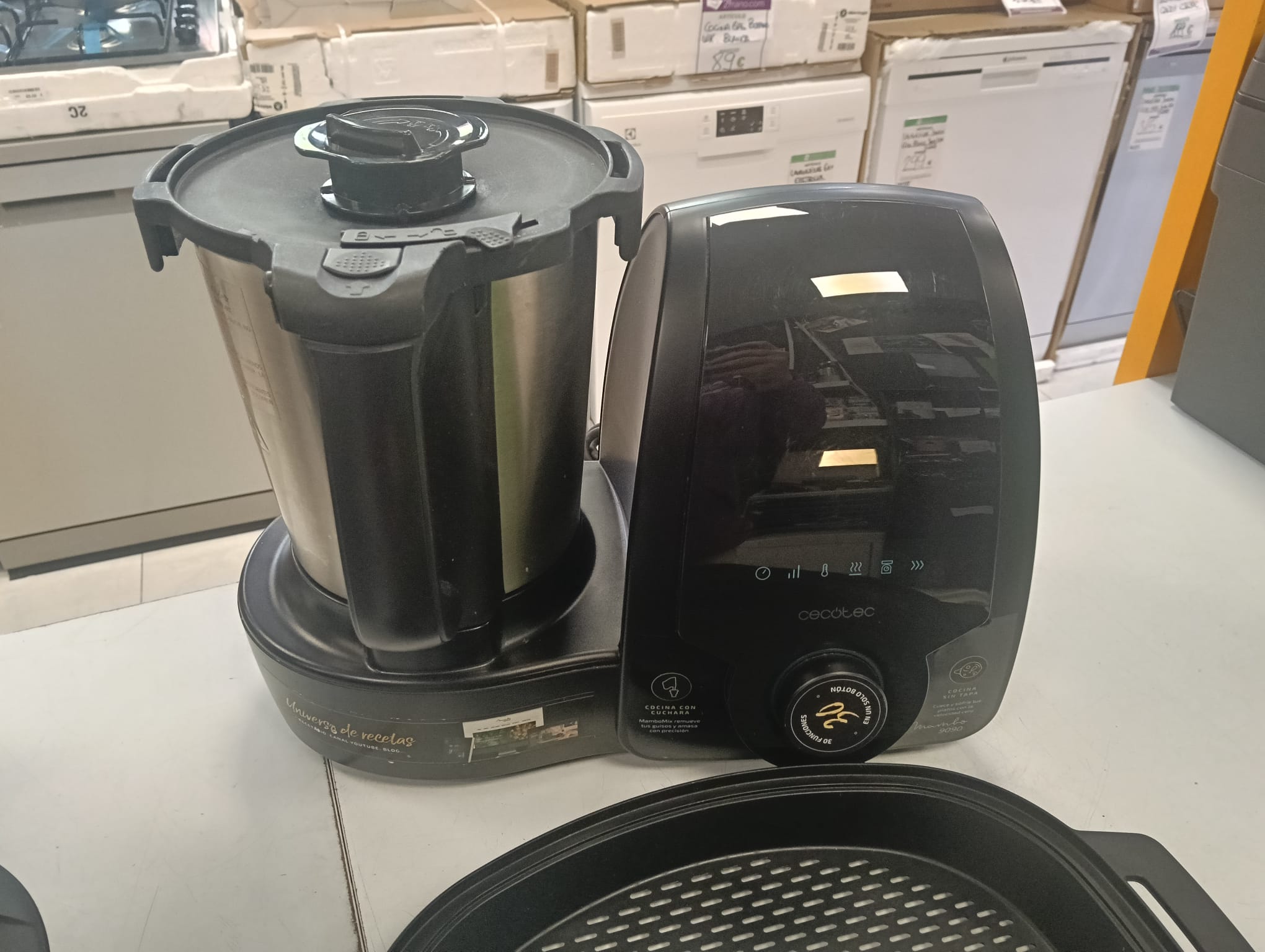 Robot de cocina Cecotec Mambo 9090 en color negro. Diseñado para facilitar la preparación de tus comidas. Jarra de acero inoxidable. Pantalla digital. Incluye accesorios.
