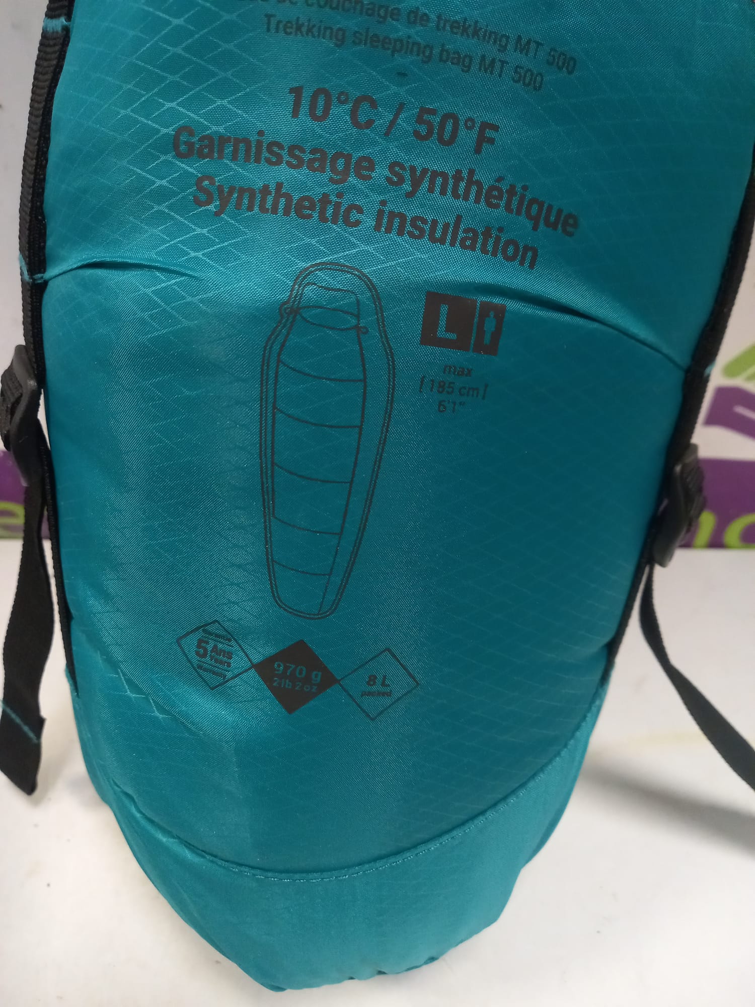 Saco de dormir guata 10 ºC confort forma momia Forclaz Trek500. Saco de dormir para dormir cómodamente en vivac a temperaturas iguales o superiores a 10°C. Nuevo a estrenar. Talla L