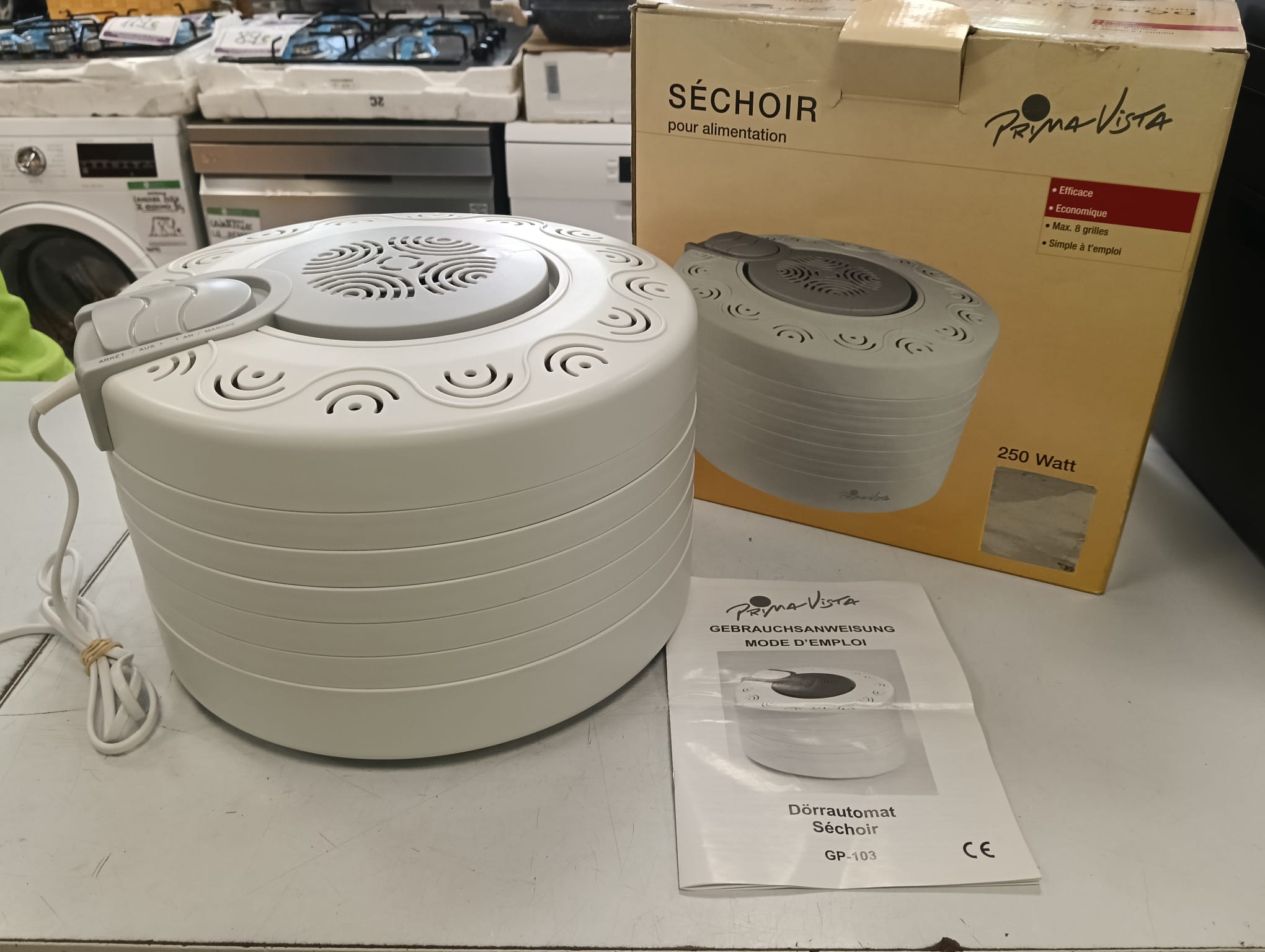 Secador de alimentos Prima Vista, modelo Séchoir GP-105. Ideal para secar frutas, verduras y hierbas de forma manual, con el centrifugado.