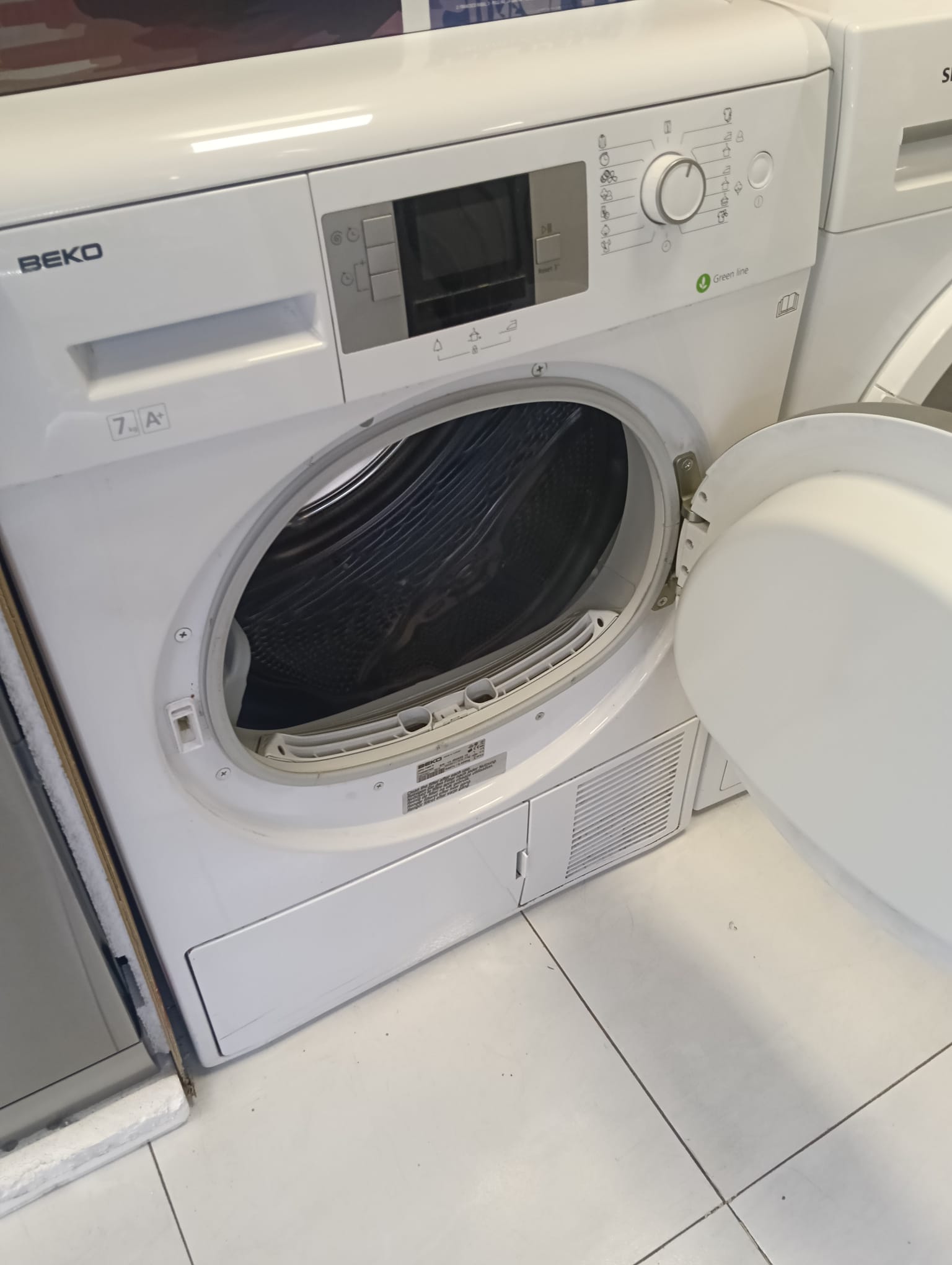 Secadora de condensación Beko con capacidad de 7kg y eficiencia energética A+. Color blanco. Panel de control digital. Programa Green line.